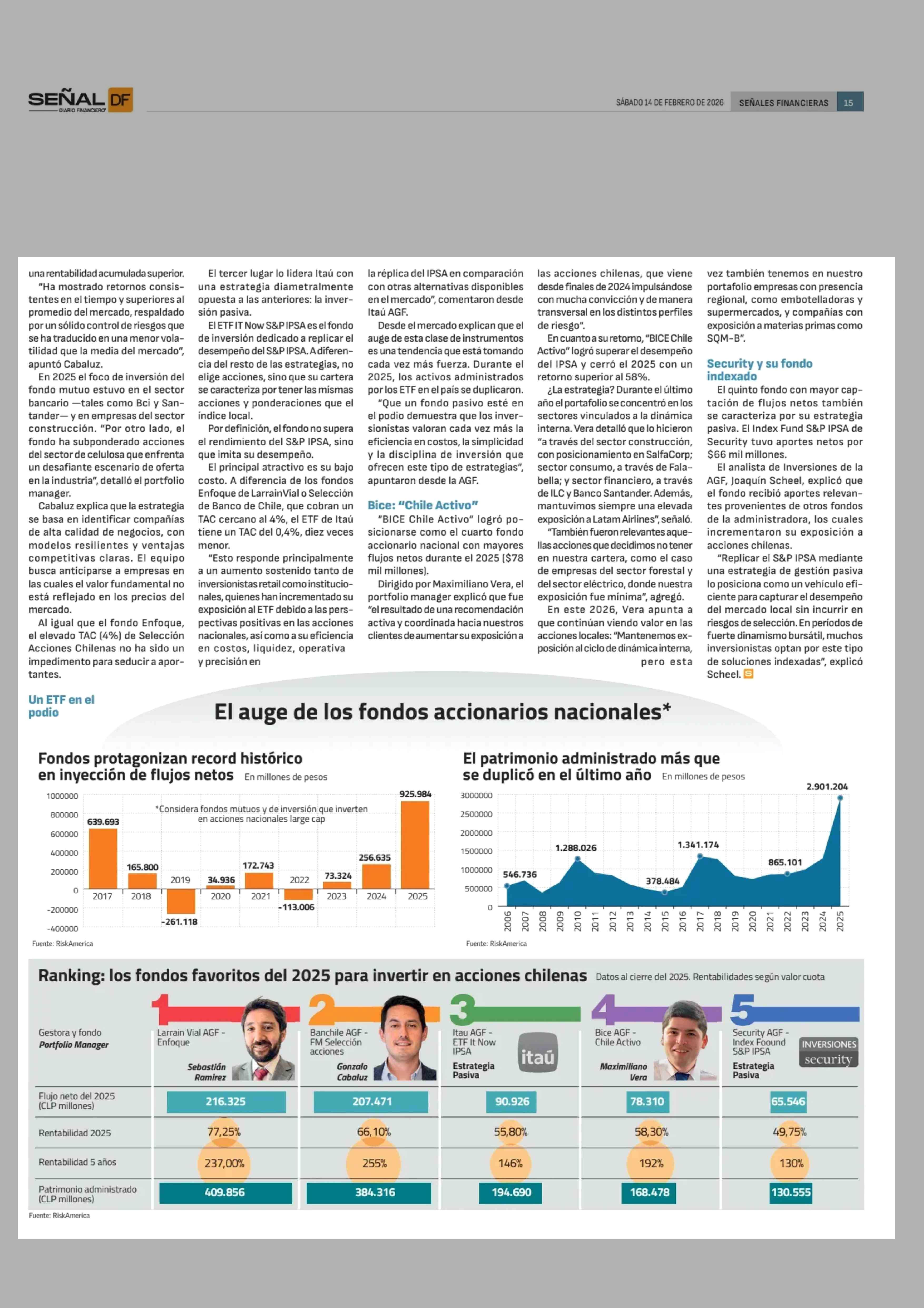 Fuente: Diario Financiero (Diario Financiero - Señal DF Sabado) Página(s): 14-15