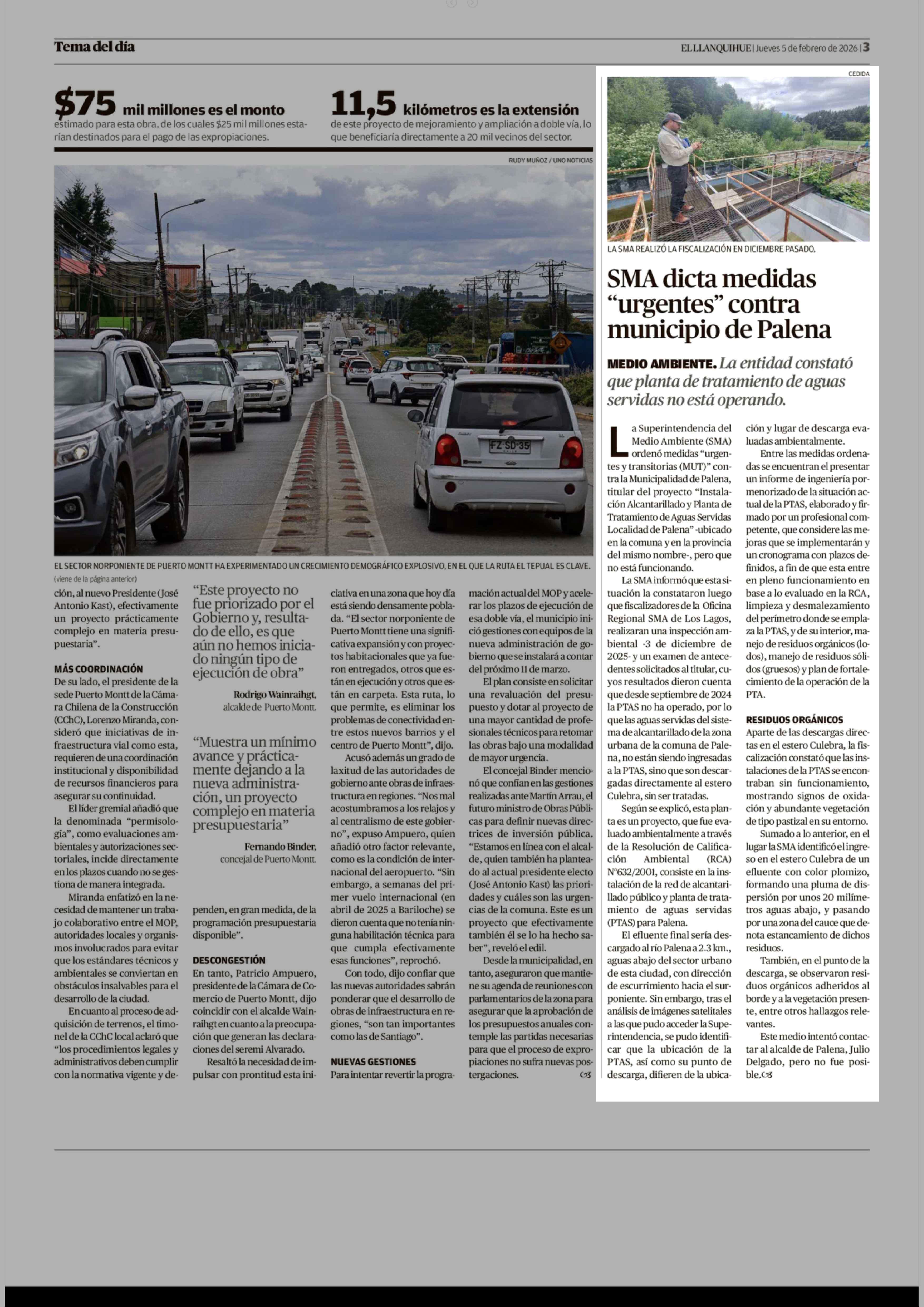 SMA dicta medidas "urgentes" contra municipio de Palena 05-02-2026 El Llanquihue |