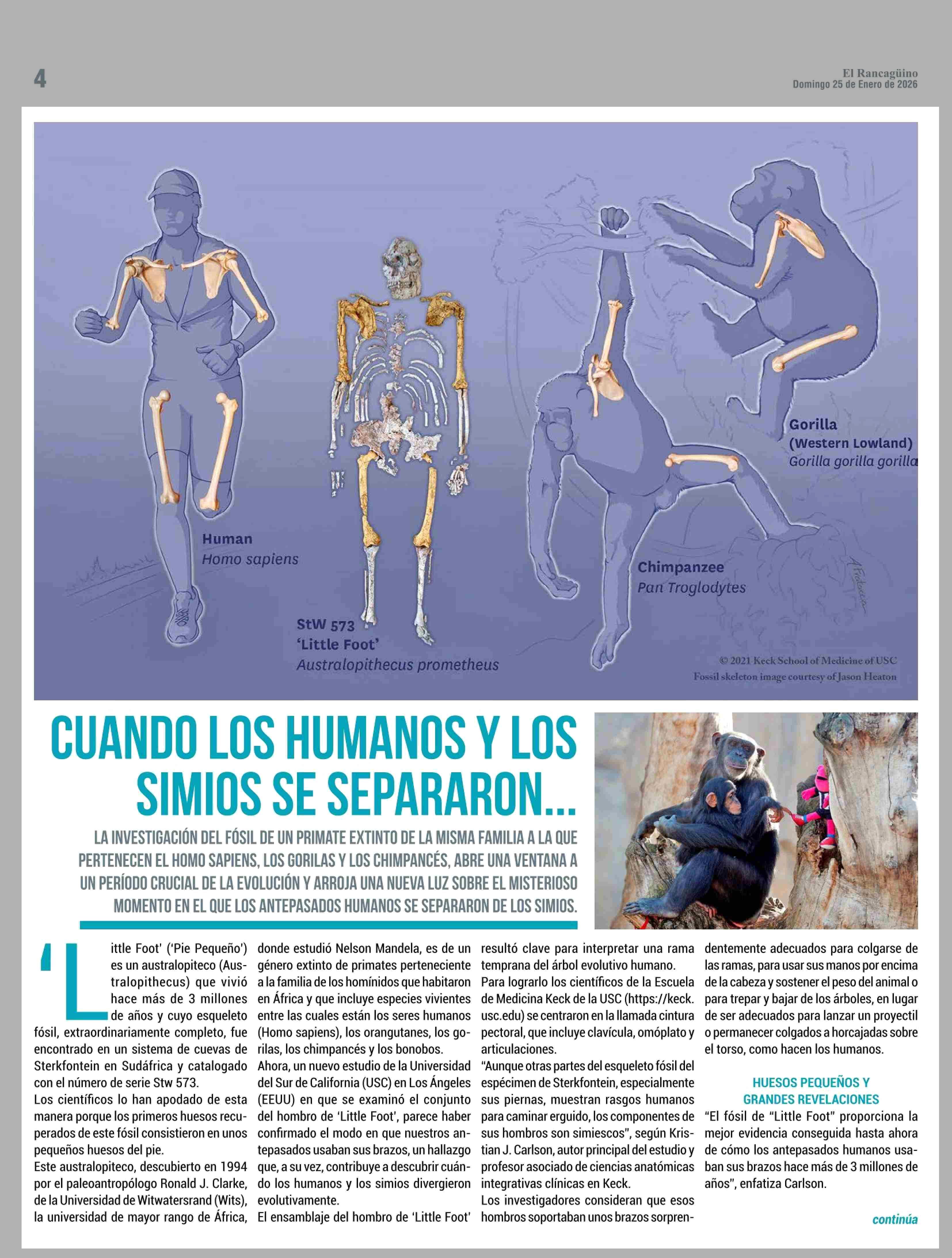 CUANDO LOS HUMANOS Y LOS SIMIOS SE SEPARARON ... 25-01-2026 El Rancagüino |