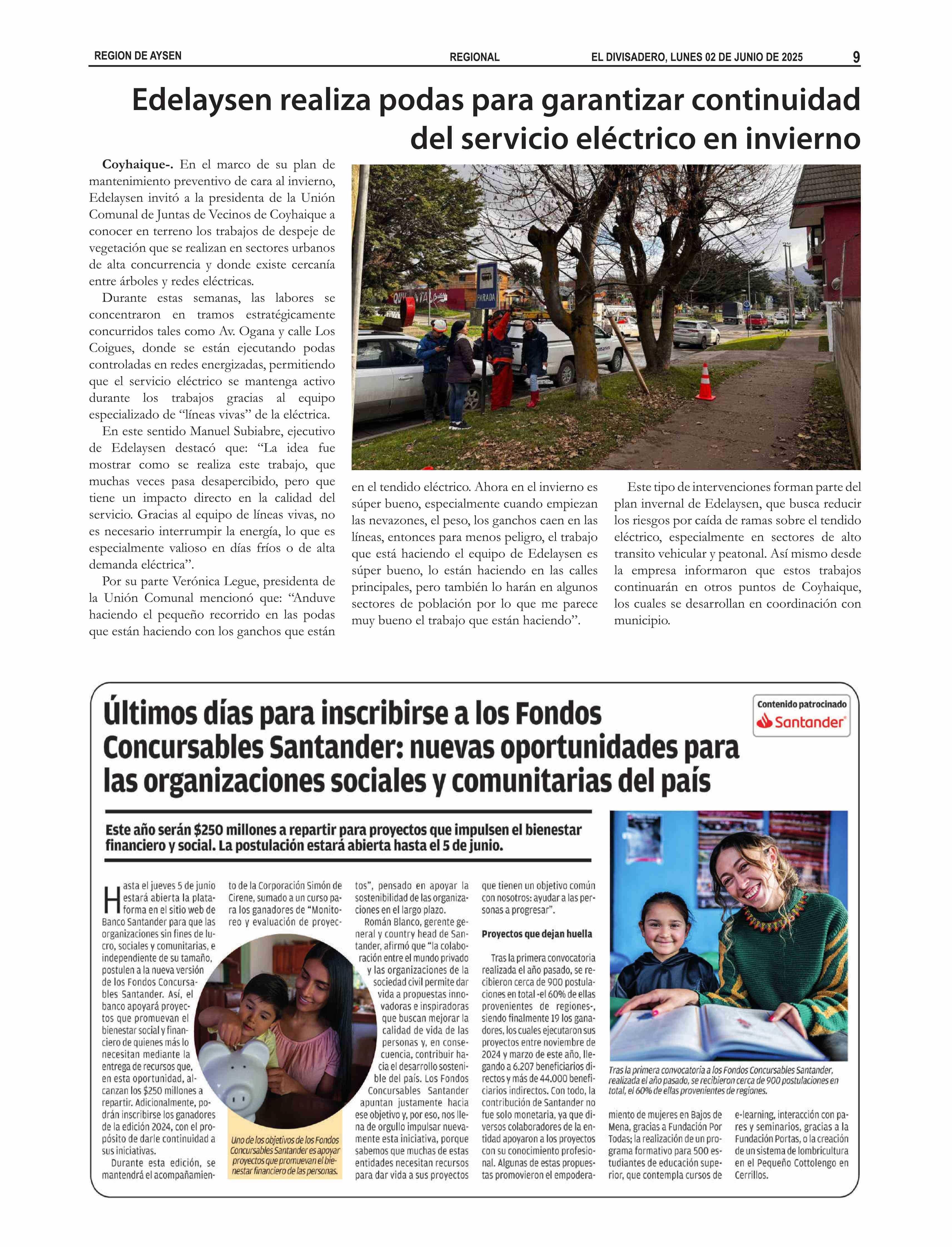 | Fecha: | 02-06-2025 | Sector: | Noticia general | Región: | Región Aysén del General Carlos Ibáñez del Campo |