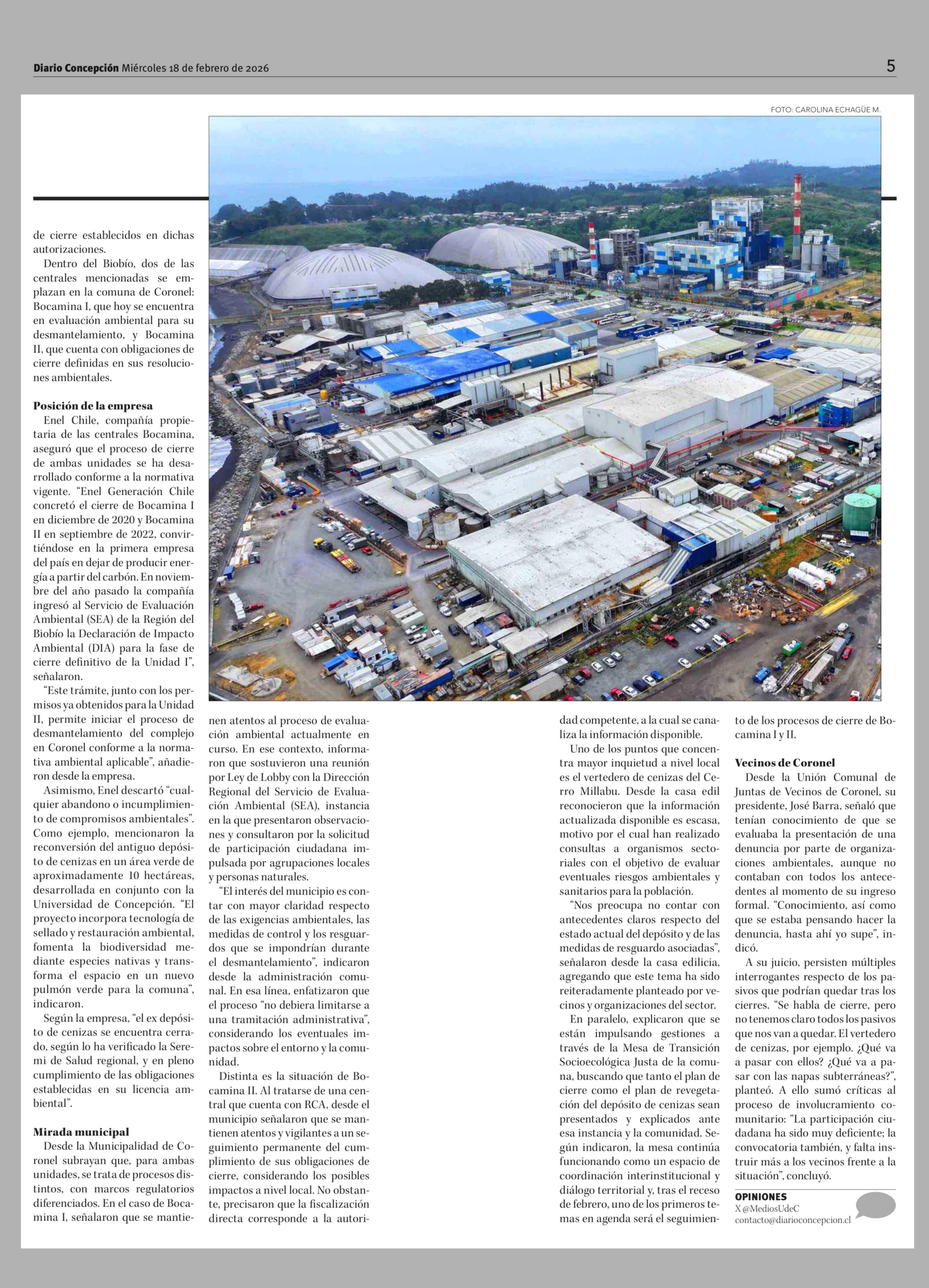 Título: Cierres de Bocamina I y II: SMA admite denuncia y municipio dice estar atento a procesos