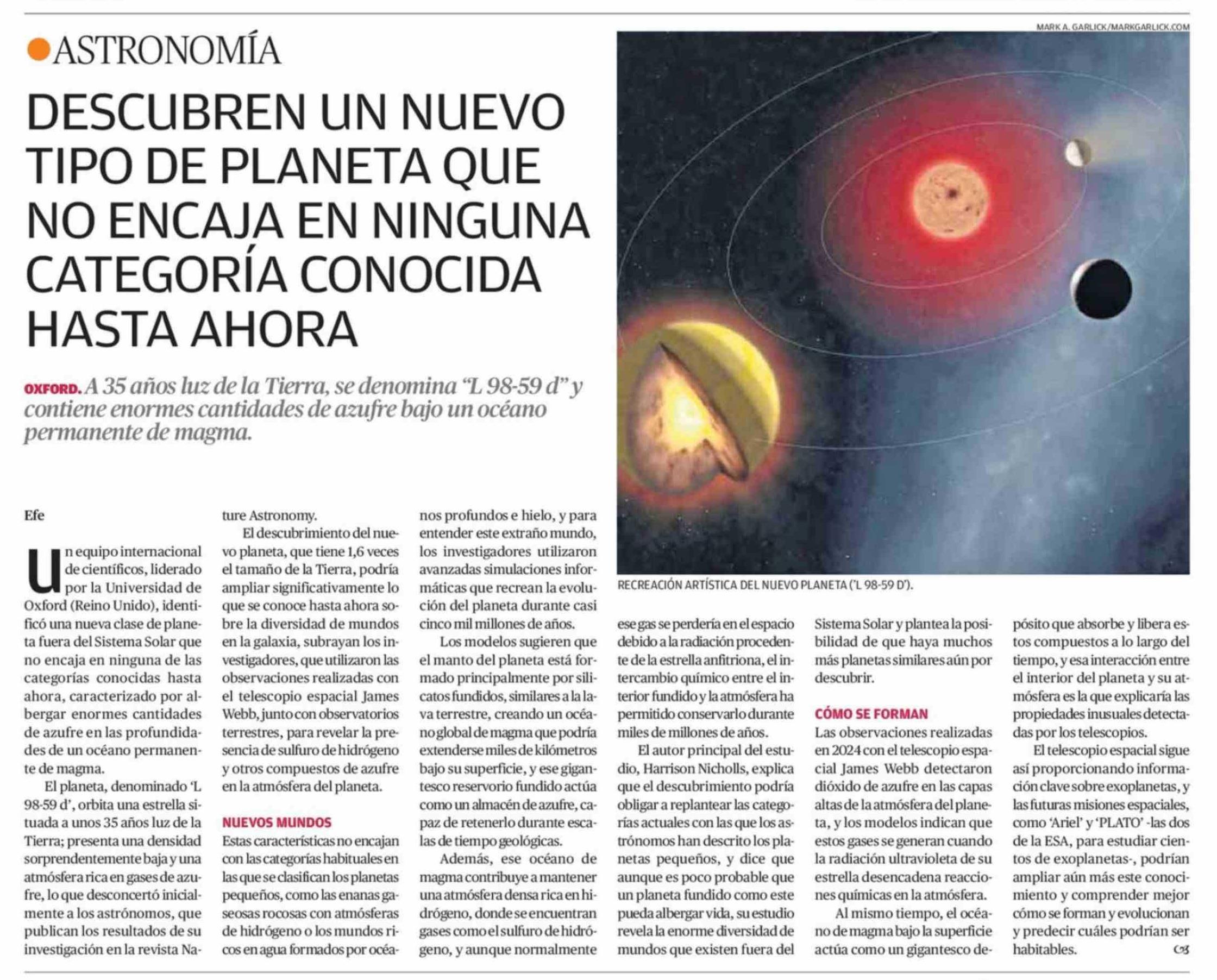 DESCUBREN UN NUEVO TIPO DE PLANETA QUE NO ENCAJA EN NINGUNA CATEGORÍA CONOCIDA HASTA AHORA 24-03-2026 El Mercurio de Calama |