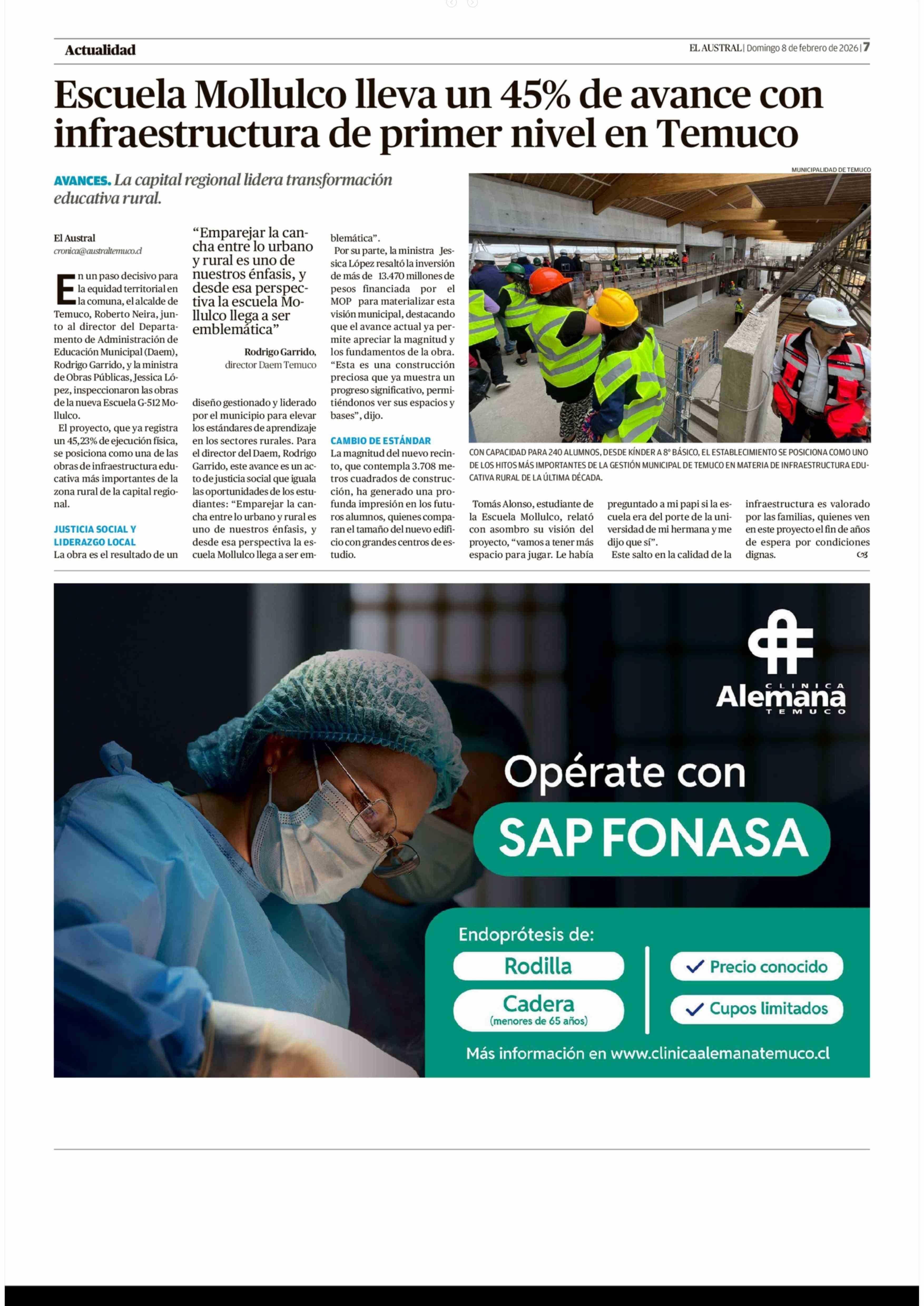 Título: Escuela Mollulco lleva un 45% de avance con infraestructura de primer nivel en Temuco