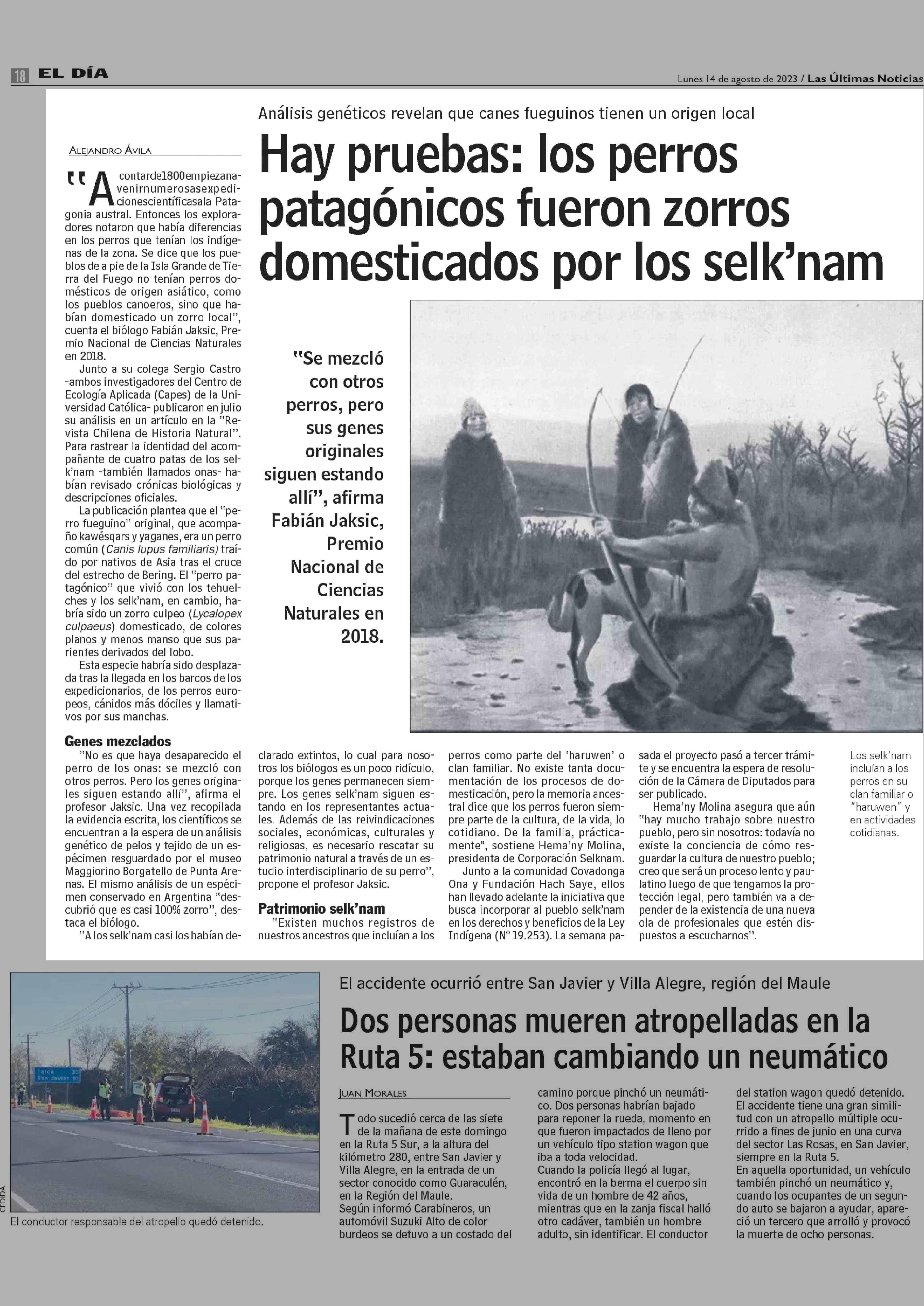 Hay pruebas: los perros patagónicos fueron zorros domesticados por los selk'nam 14-08-2023 Las Últimas Noticias |