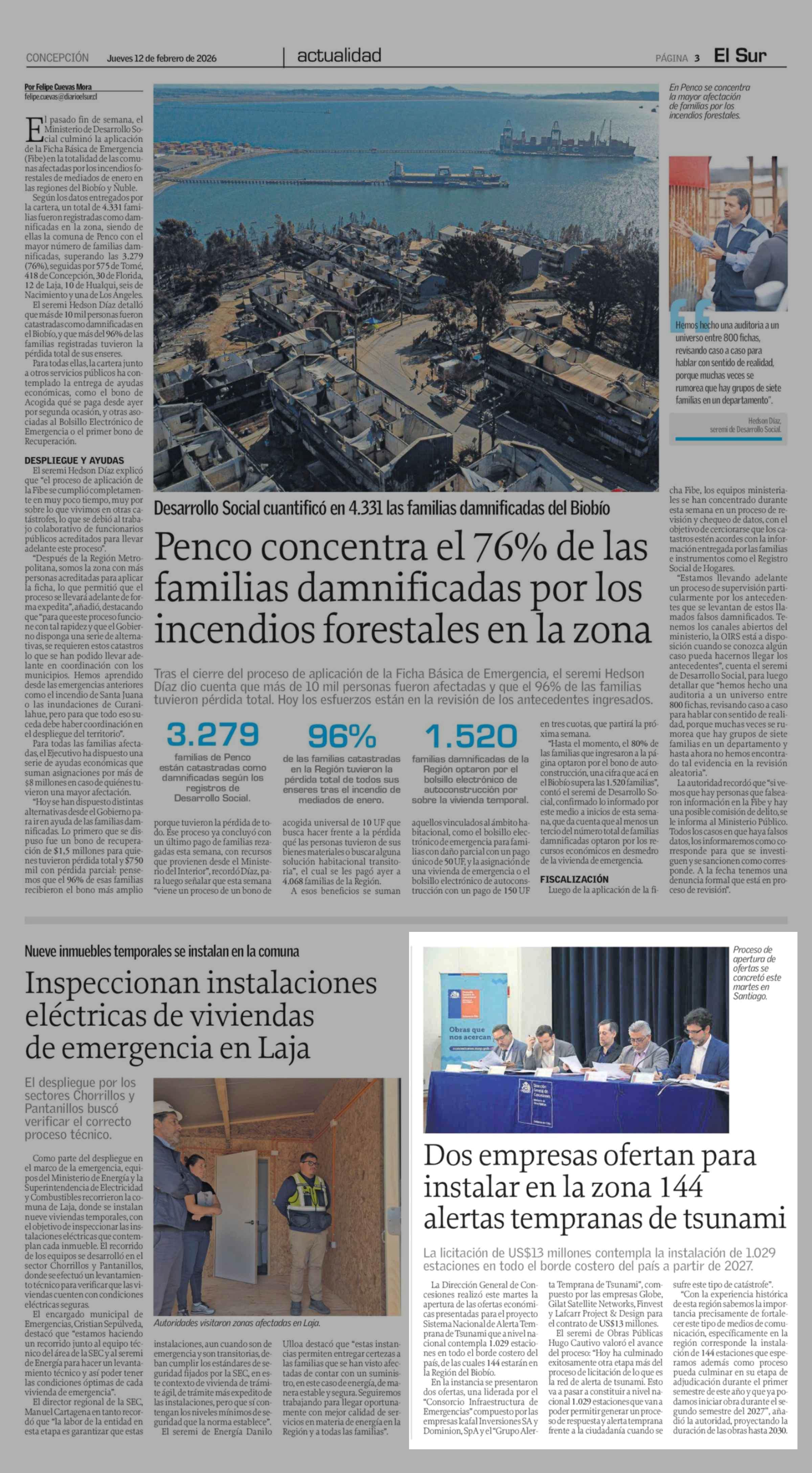 Dos empresas ofertan para instalar en la zona 144 alertas tempranas de tsunami 12-02-2026 El Sur |
