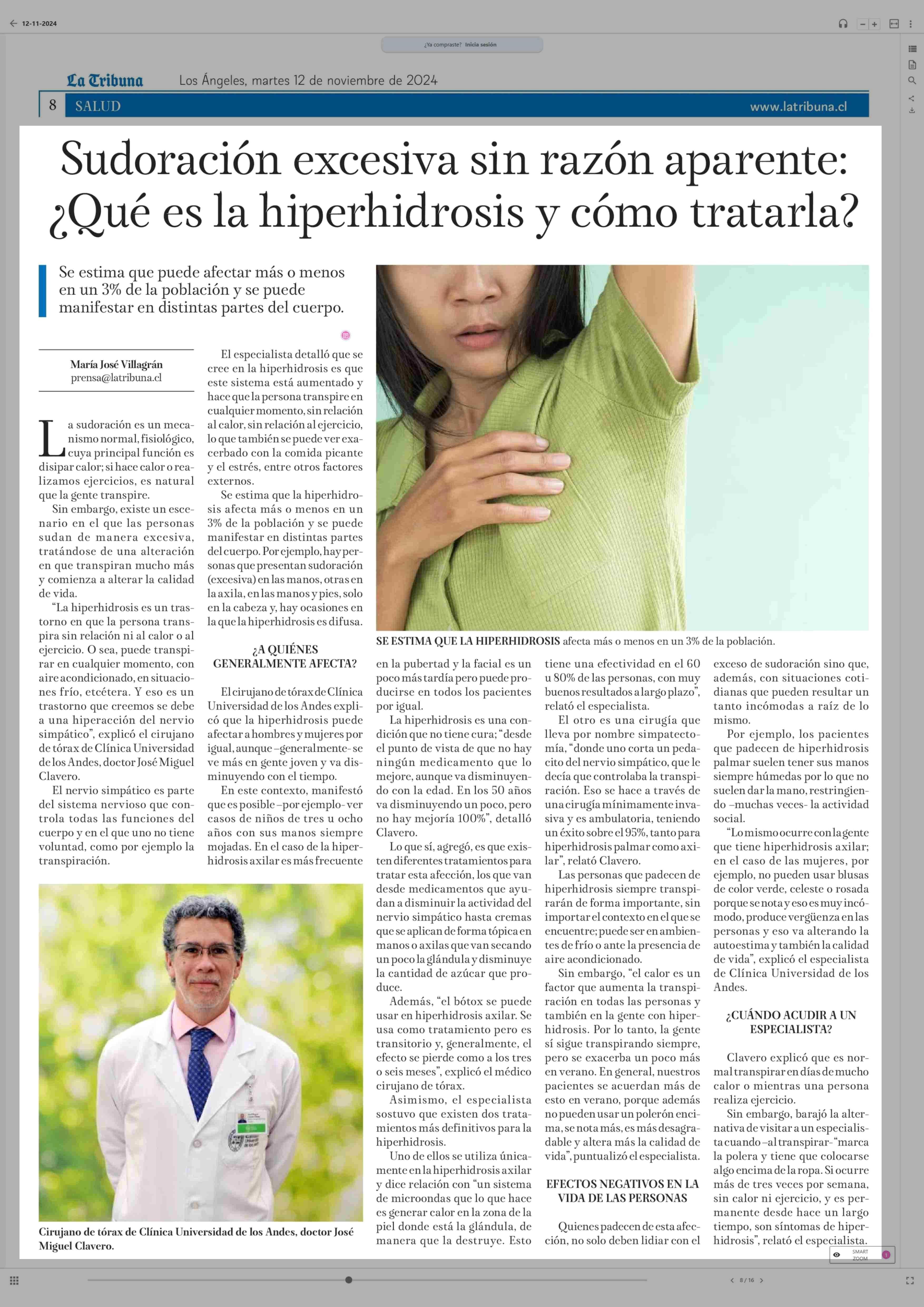 | Título: | Sudoración excesiva sin razón aparente: ¿Qué es la hiperhidrosis y cómo tratarla? |