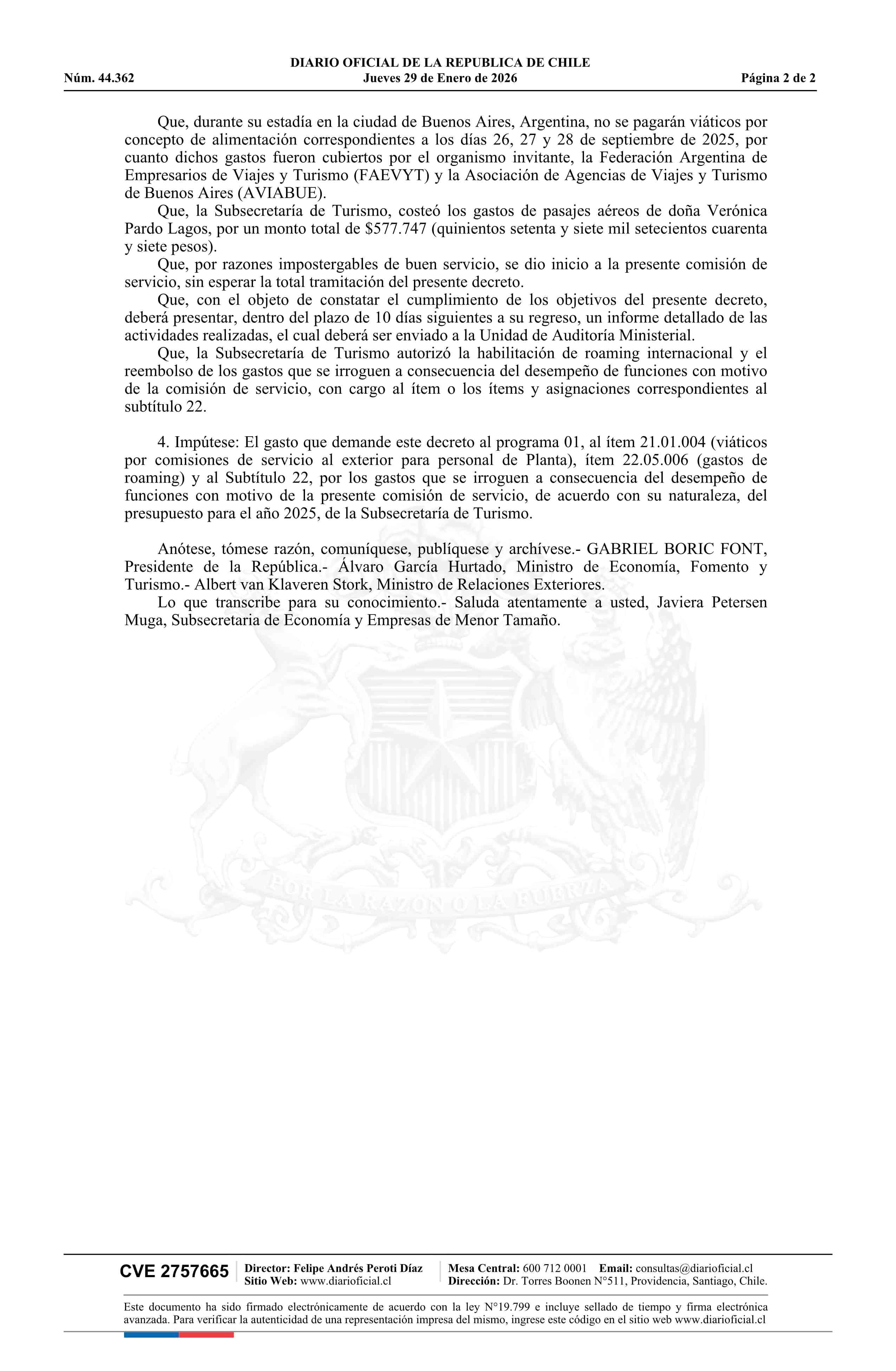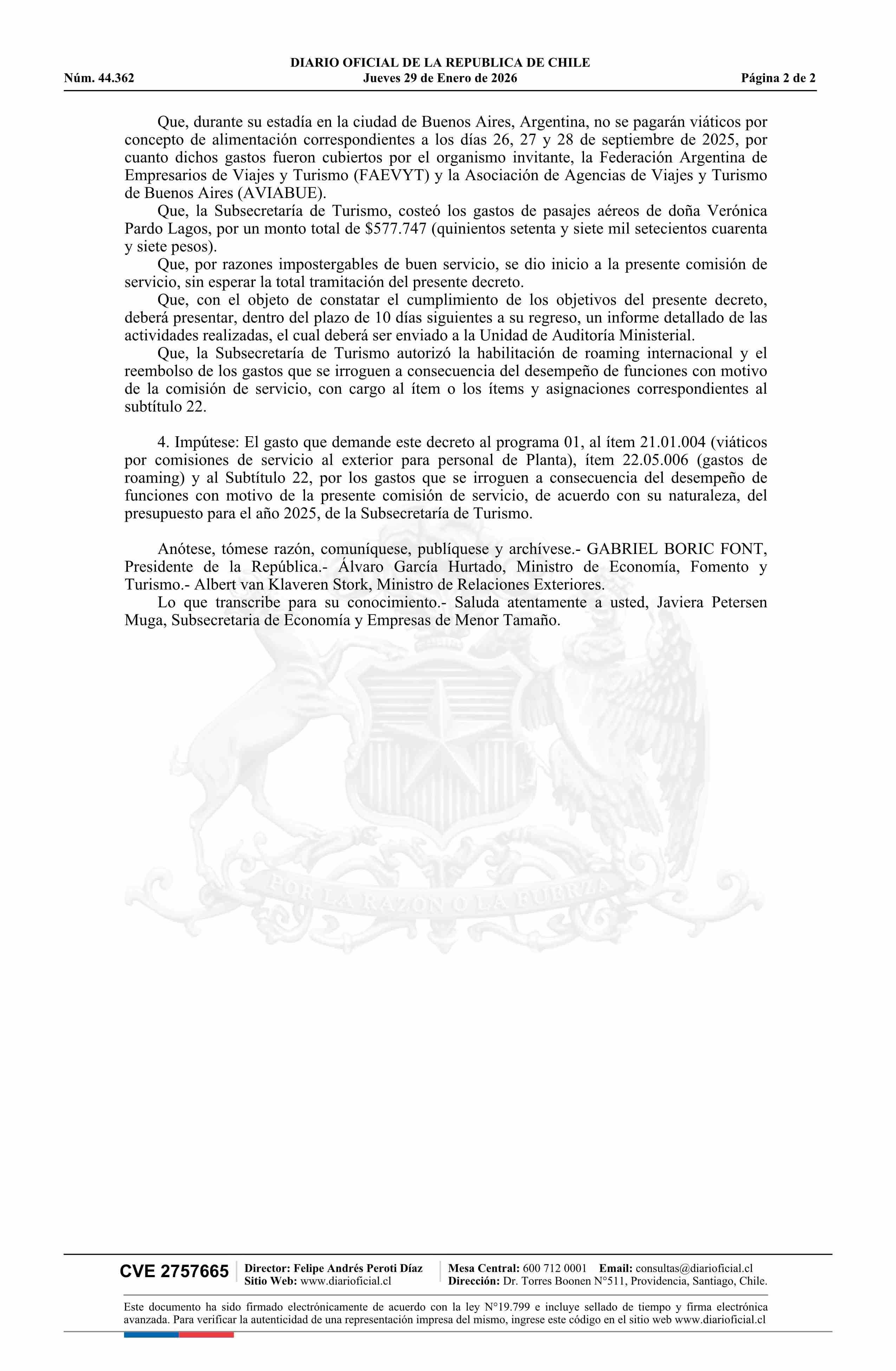 Título: Decreto número 82, de 2025.- Destina en comisión de servicio a doña Verónica Pardo Lagos, Subsecretaria de Turismo, a la ciudad de Buenos Aires, Argentina