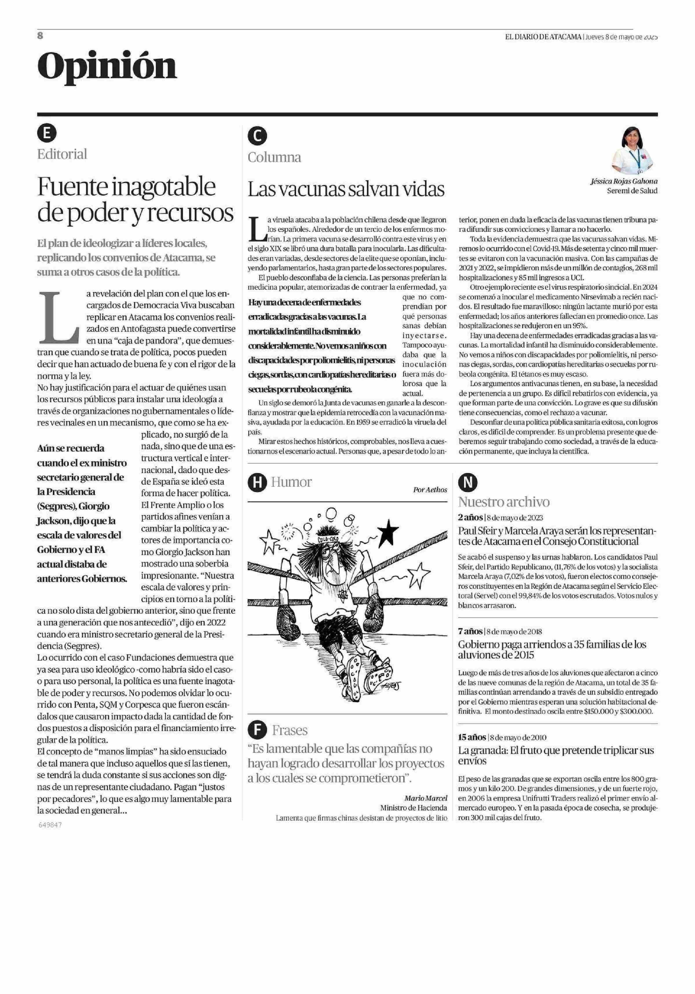 Columnas de Opinión: Las vacunas salvan vidas 08-05-2025 El Diario de Atacama |