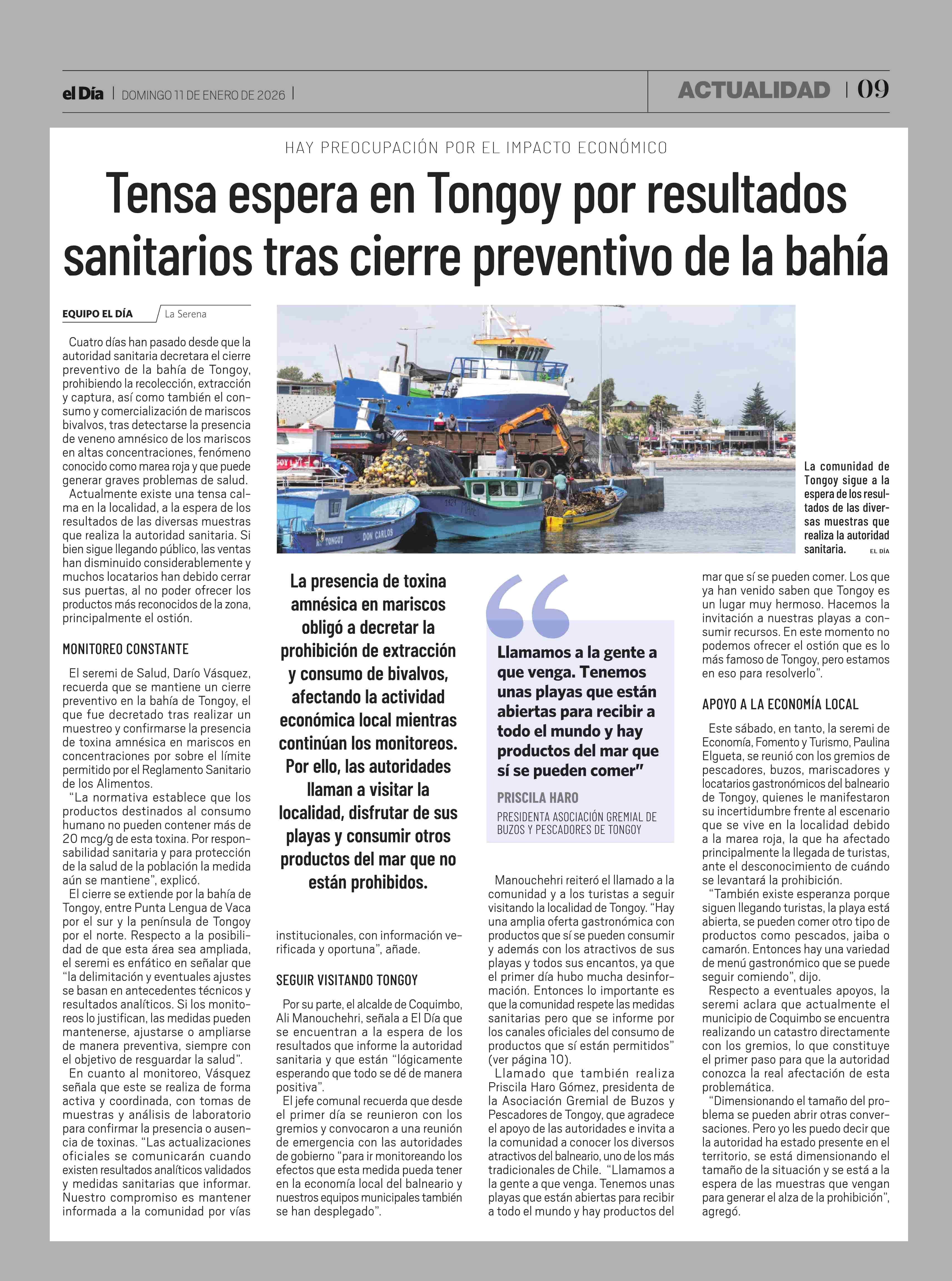 Título: Tensa espera en Tongoy por resultados sanitarios tras cierre preventivo de la bahía