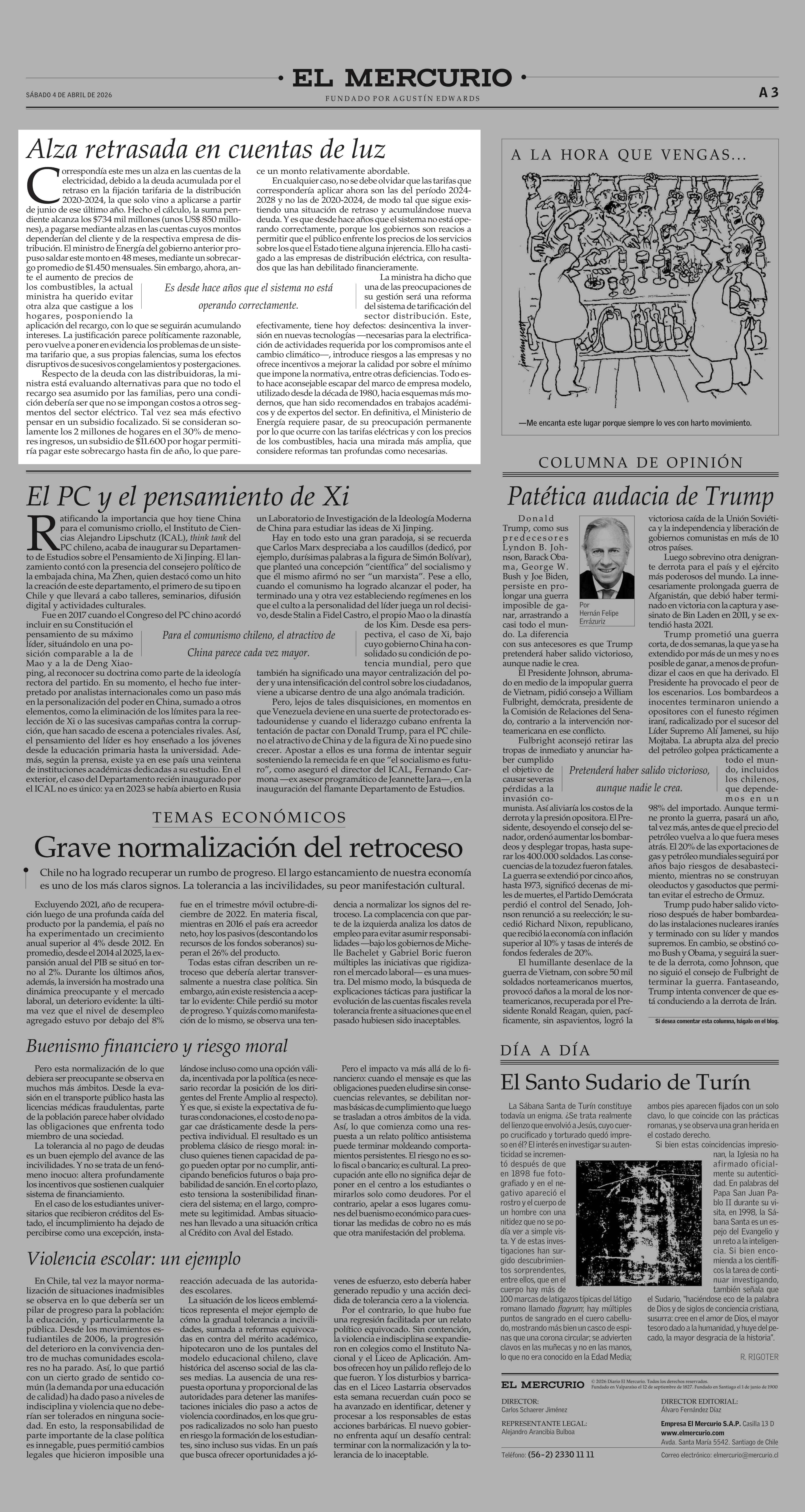 Editorial: Alza retrasada en cuentas de luz 04-04-2026 El Mercurio |