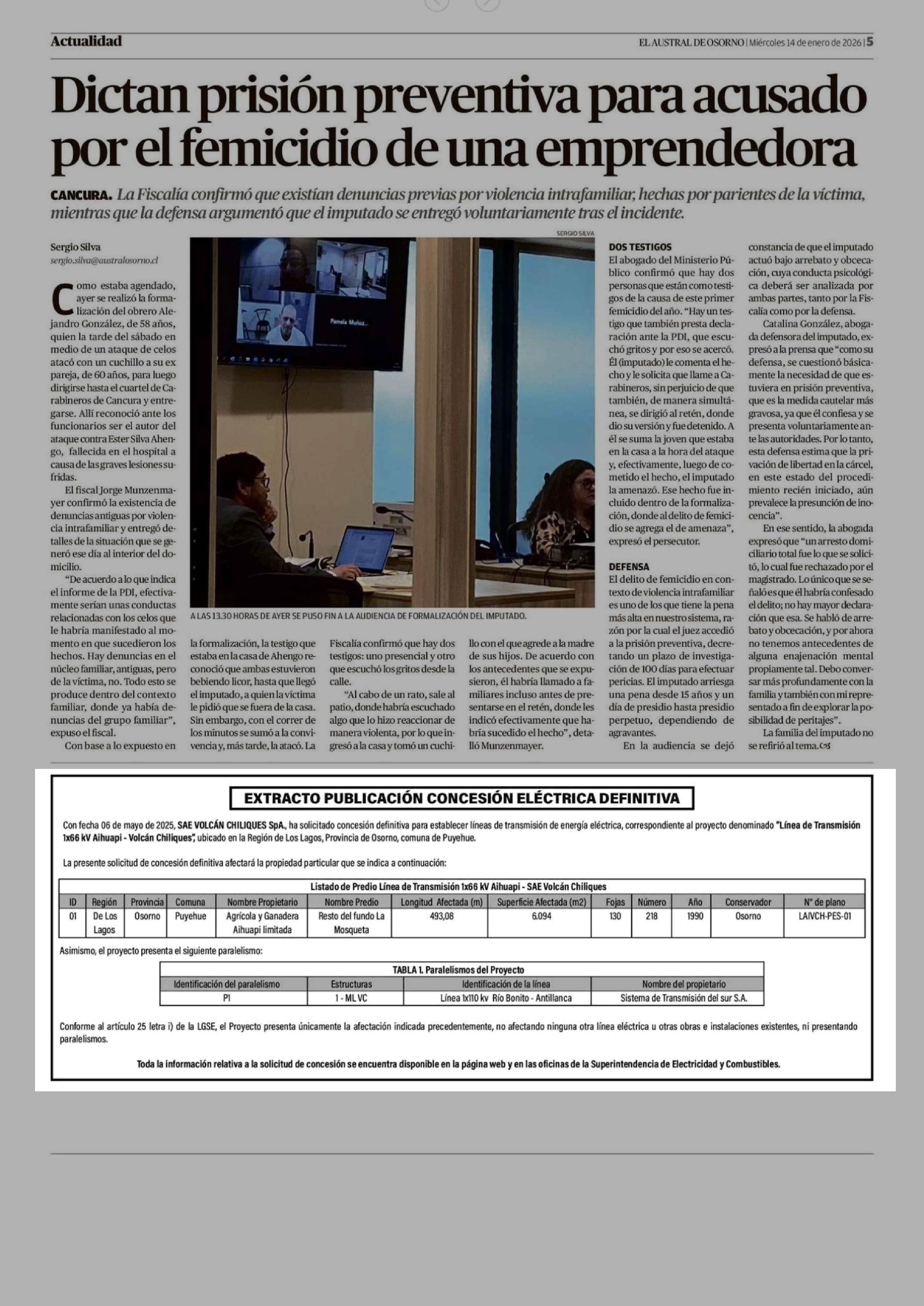 Extractos: EXTRACTO PUBLICACIÓN CONCESIÓN ELÉCTRICA DEFINITIVA 14-01-2026 El Austral de Osorno |