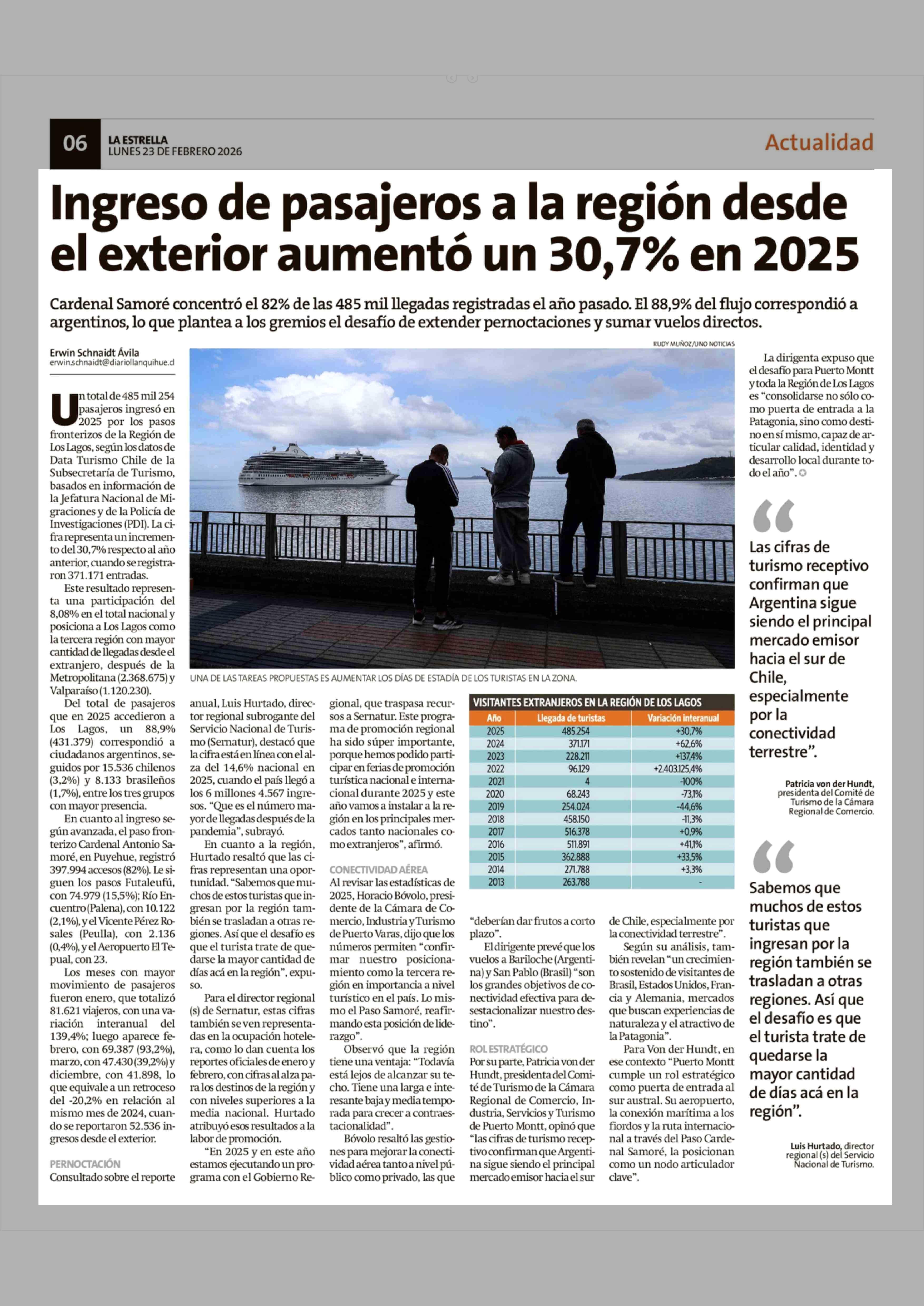 Ingreso de pasajeros a la región desde el exterior aumentó un 30,7% en 2025 23-02-2026 La Estrella de Chiloé |