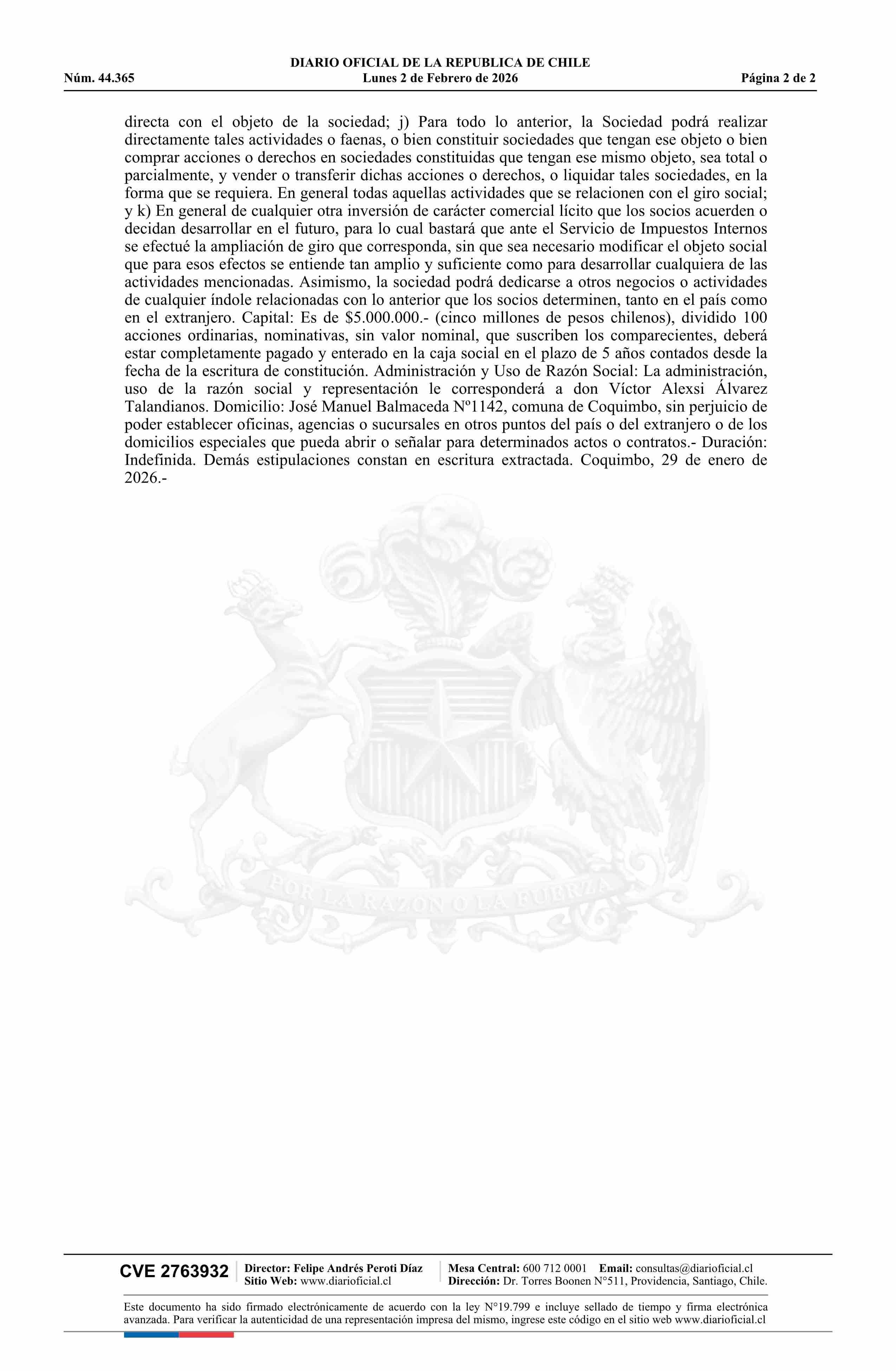 SOCIEDAD MEGA FUN SpA 02-02-2026 Diario Oficial Edición Electrónica |