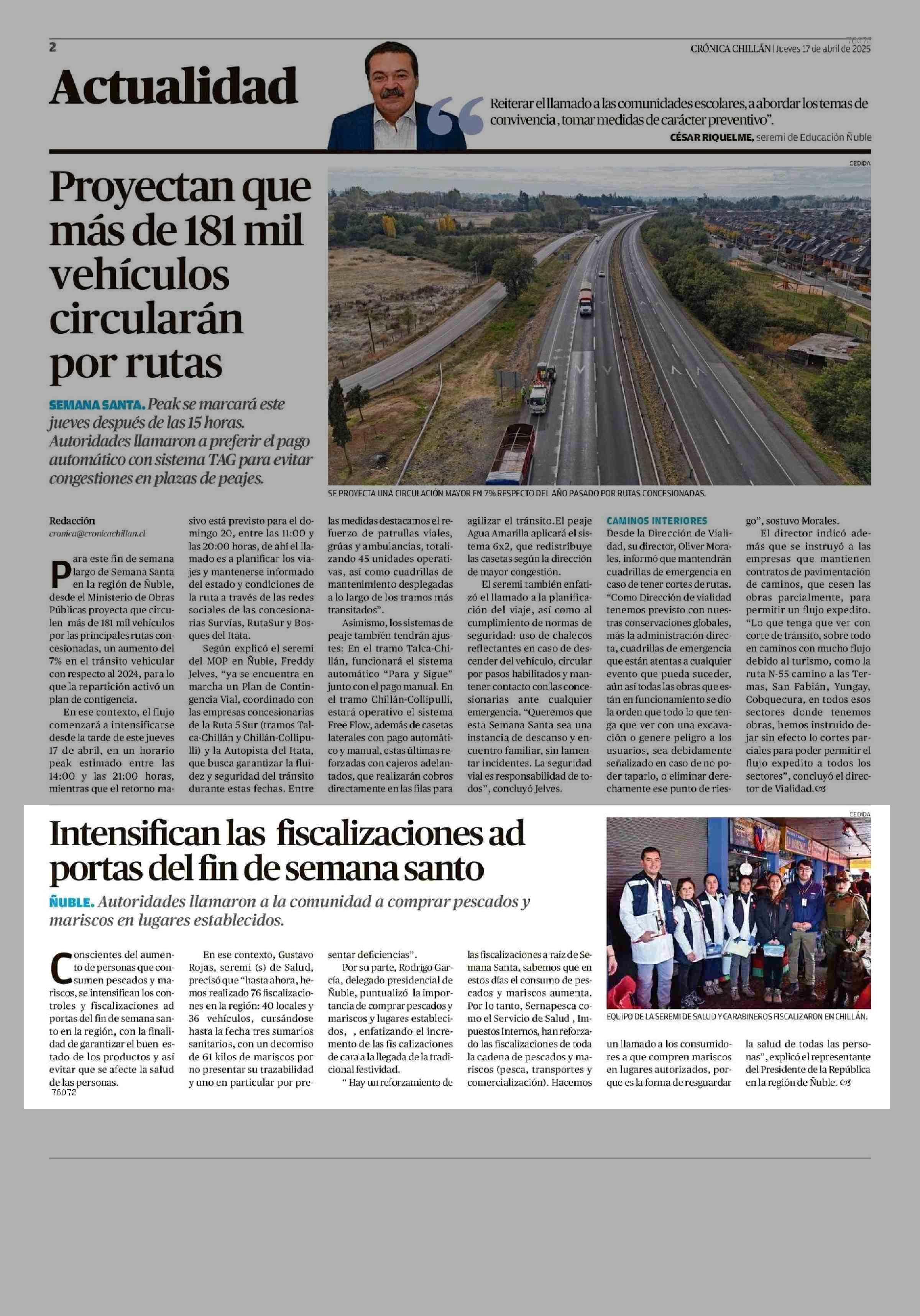 Intensifican las fiscalizaciones ad portas del fin de semana santo 17-04-2025 Crónica de Chillán |