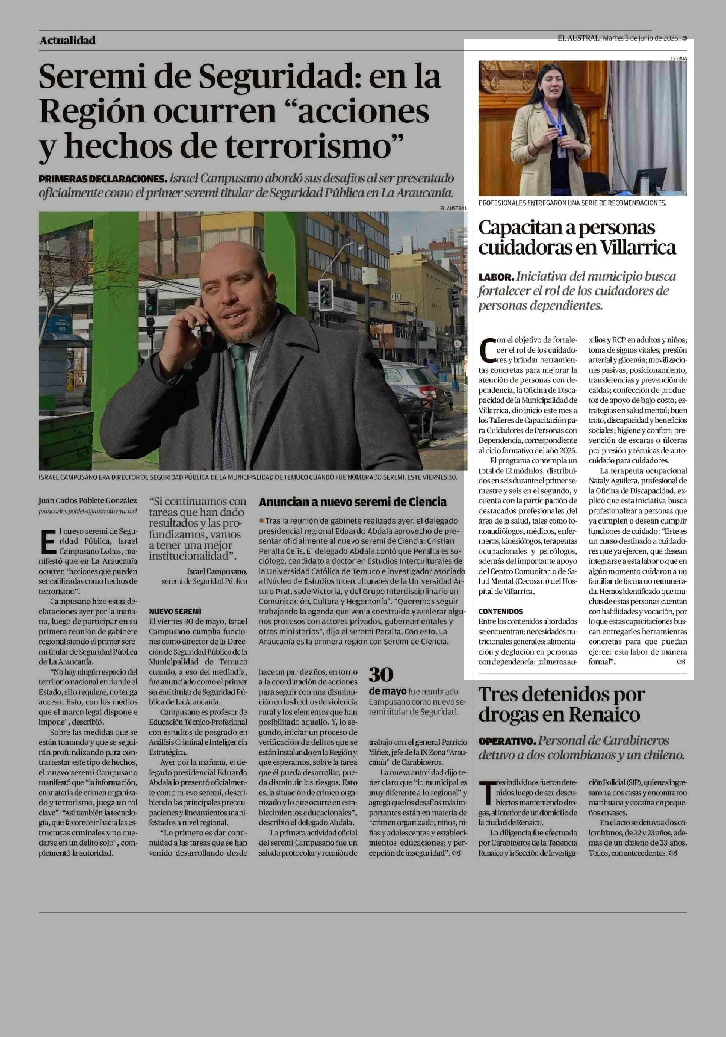 | Fecha: | 03-06-2025 | Sector: | Noticia general | Región: | Región de la Araucanía |