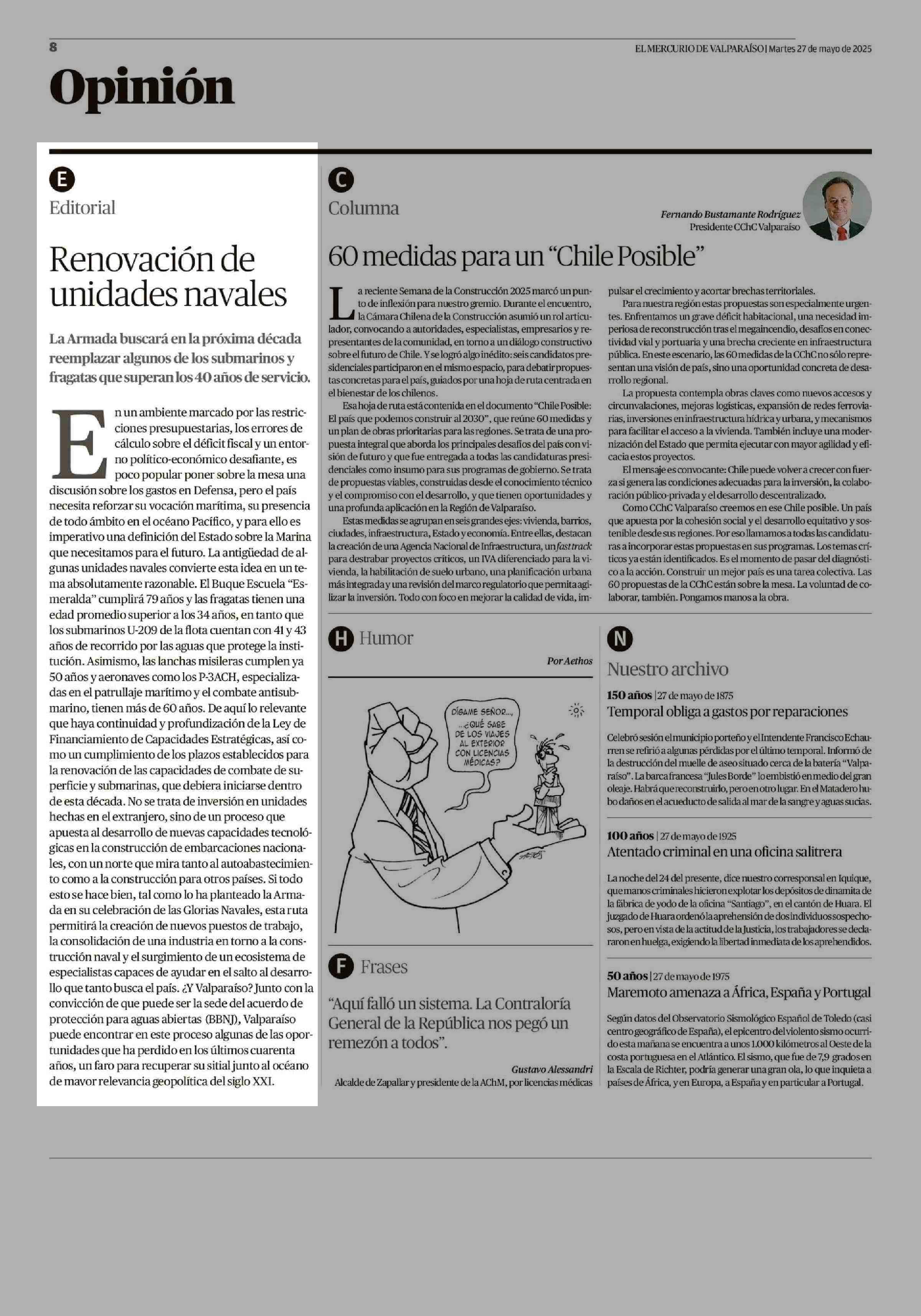 Editorial: Renovación de unidades navales 27-05-2025 El Mercurio de Valparaíso |