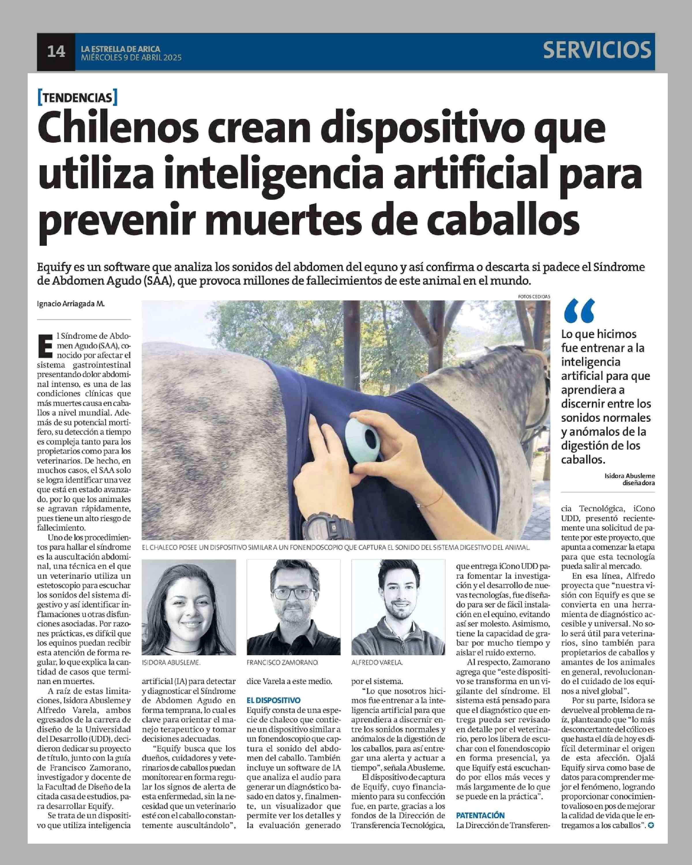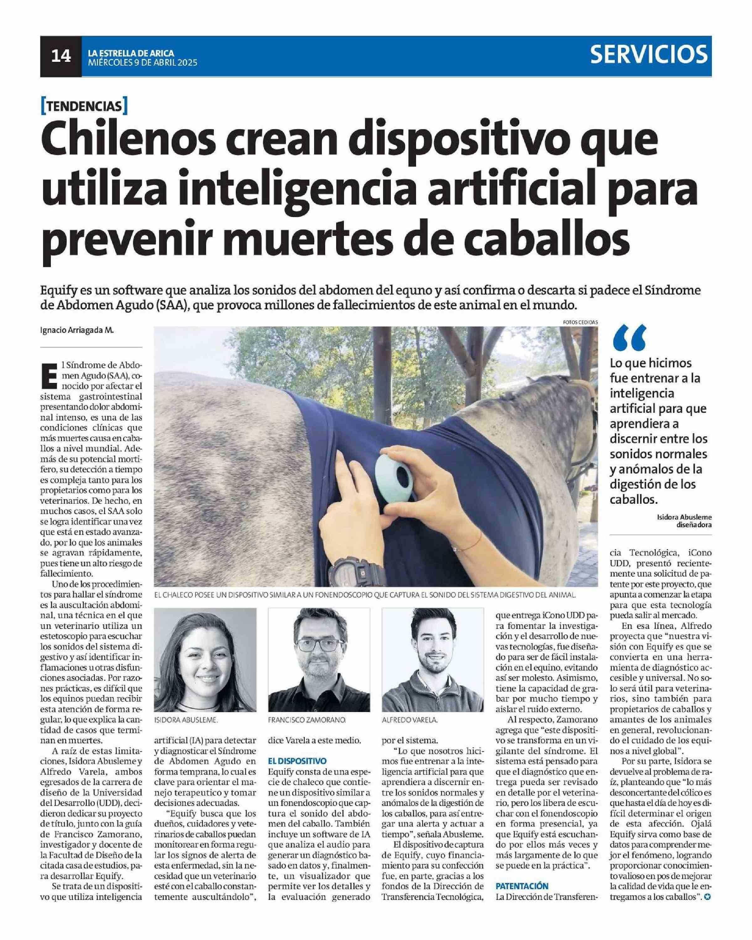 Título: Chilenos crean dispositivo que utiliza inteligencia artificial para prevenir muertes de caballos
