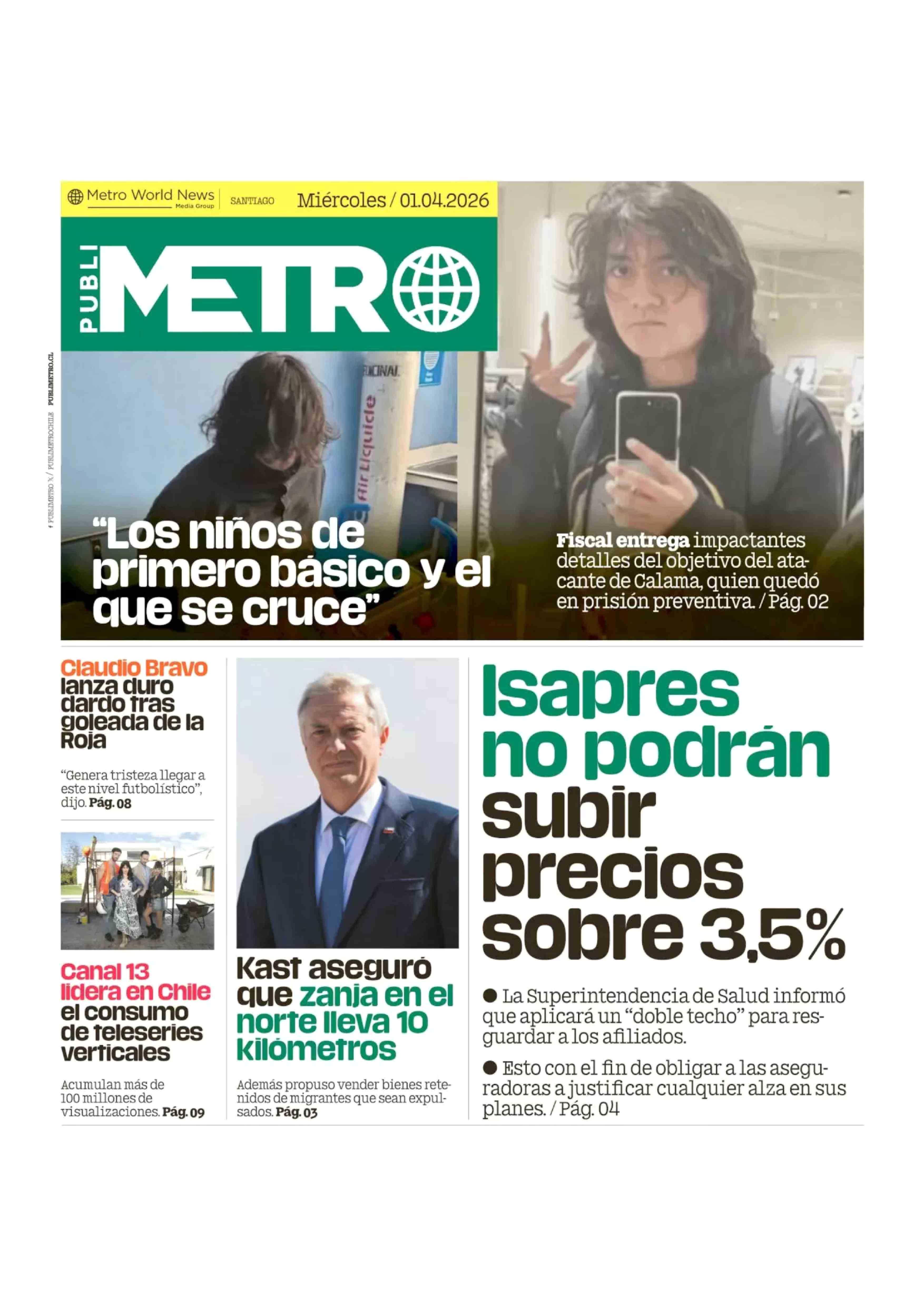 PORTADA PUBLIMETRO CHILE 01-04-2026 Publimetro |
