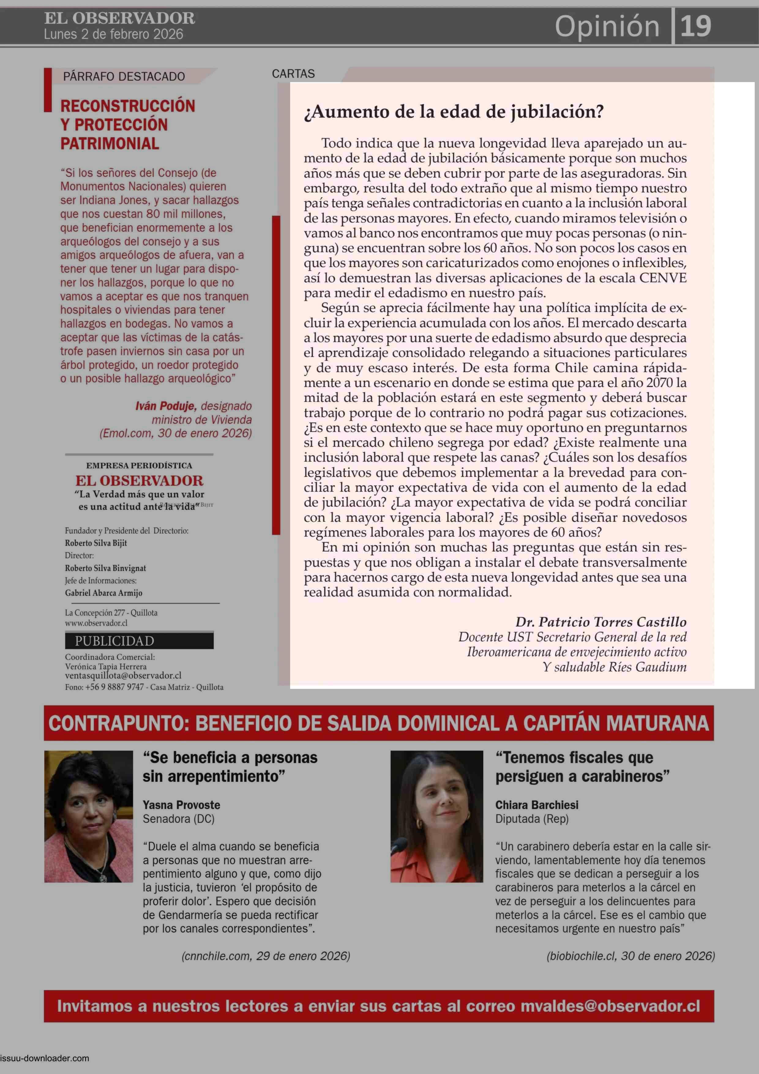 CARTAS: ¿Aumento de la edad de jubilación? 02-02-2026 El Observador Vespertino |