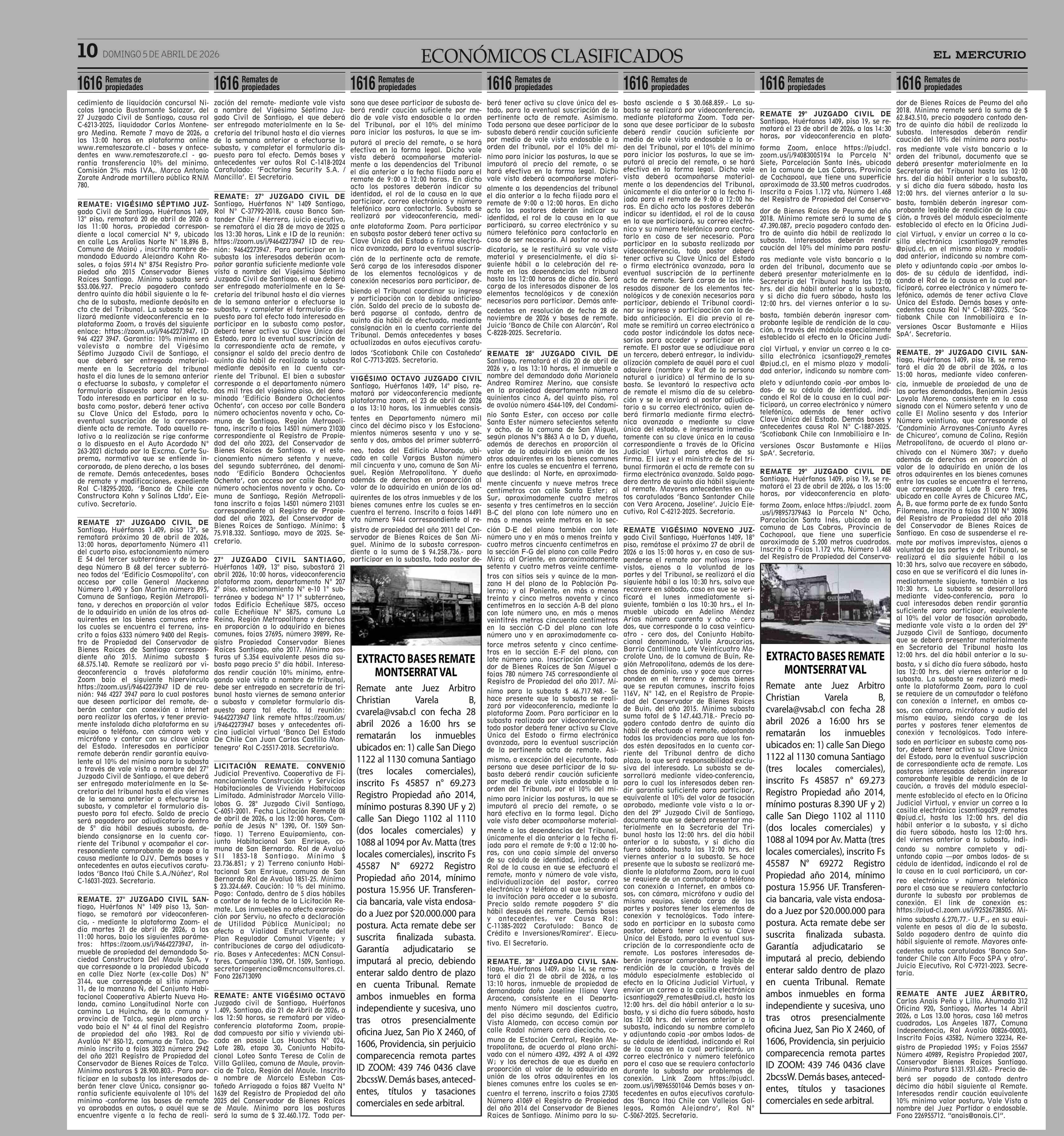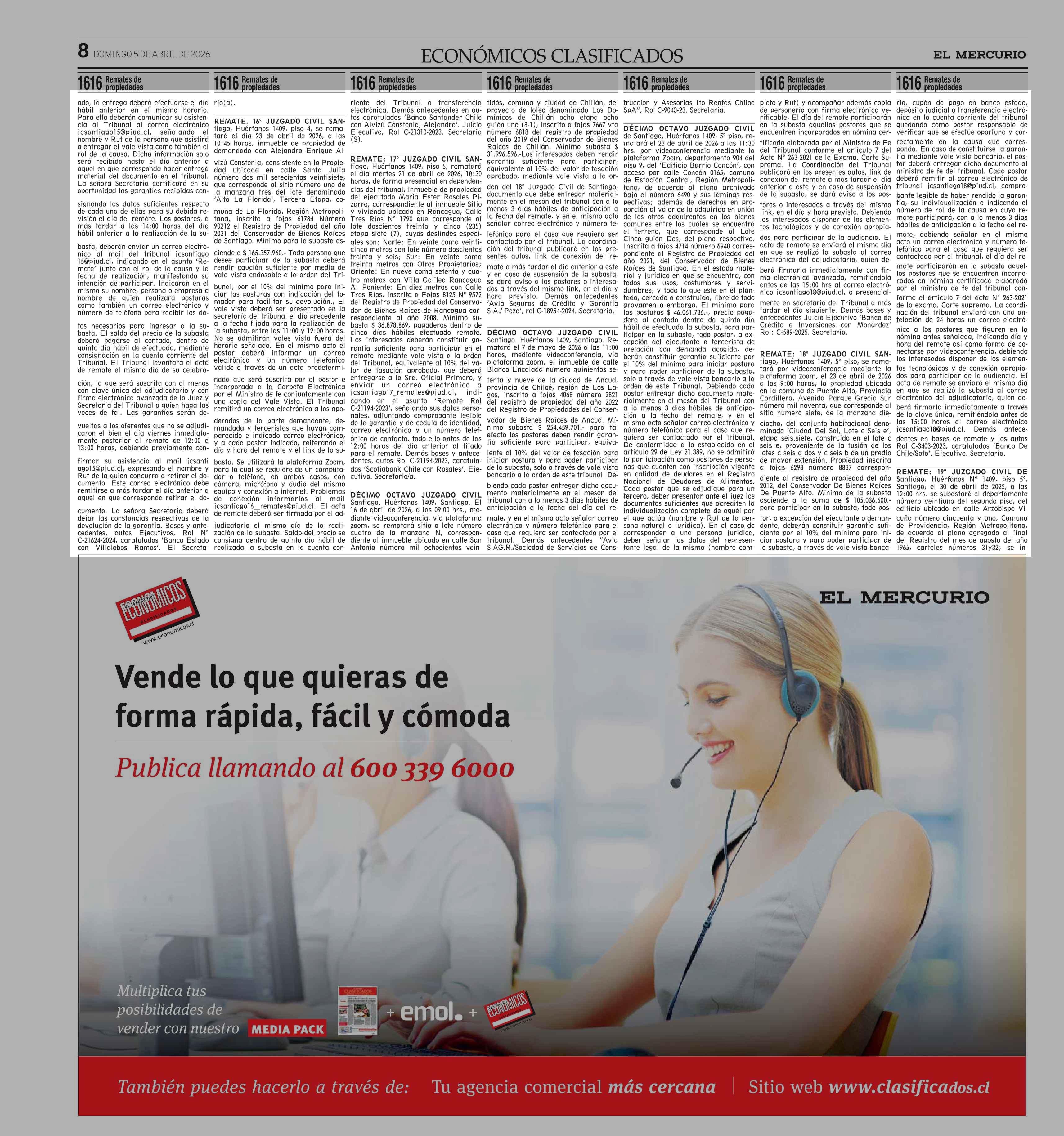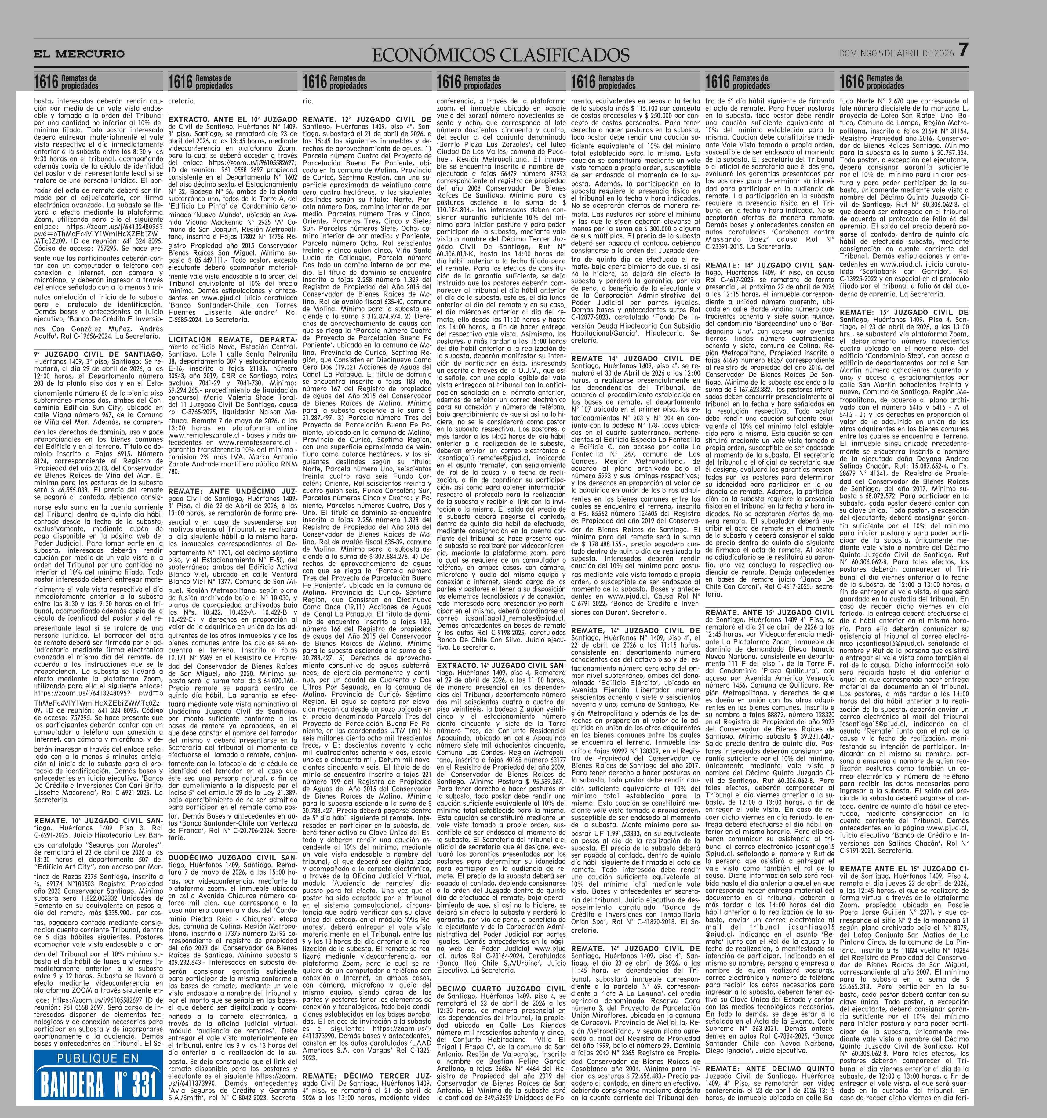 REMATES: PROPIEDADES 05-04-2026 El Mercurio |