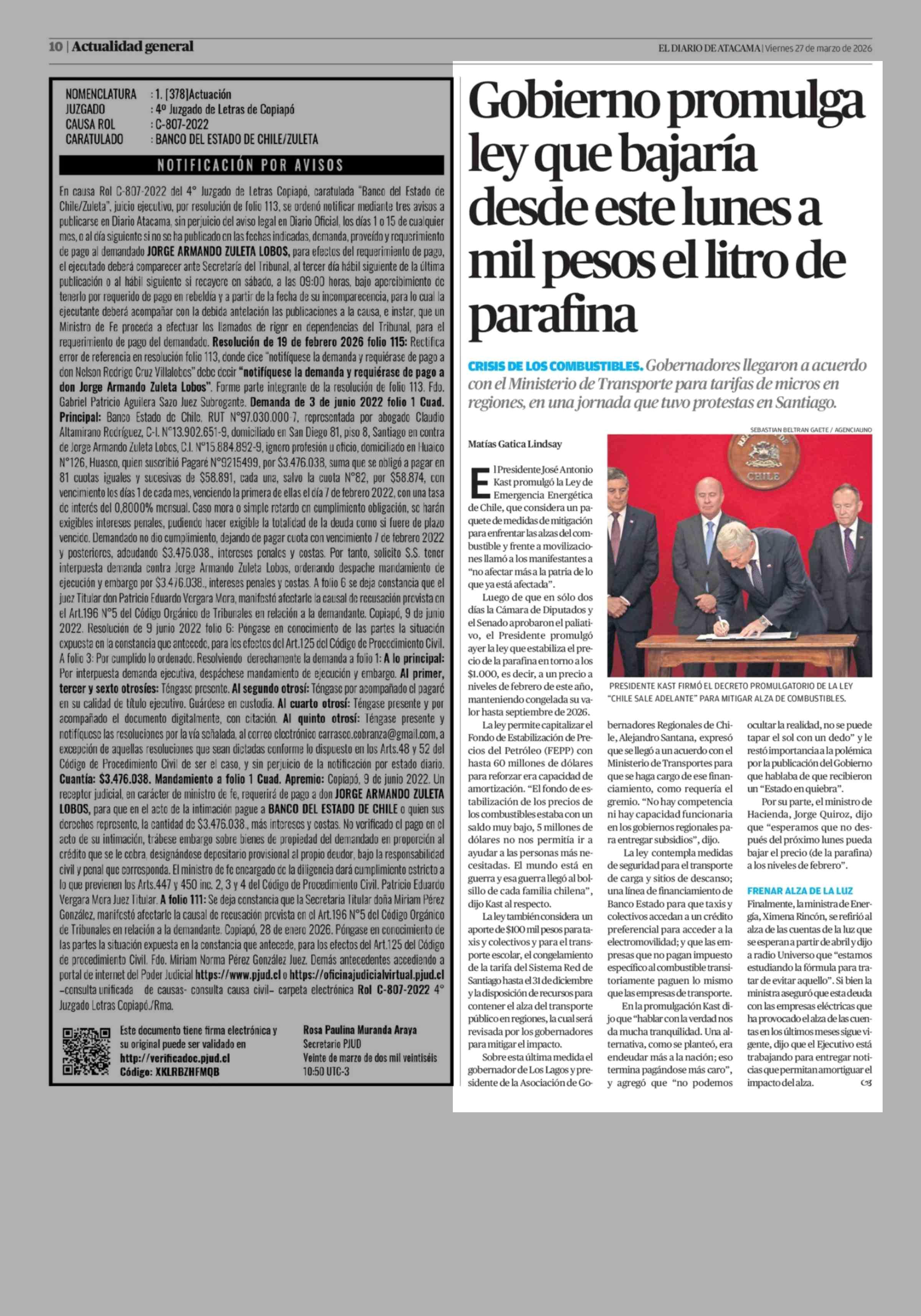 Fecha: 27-03-2026 Sector: Noticia general Región: Región de Atacama
