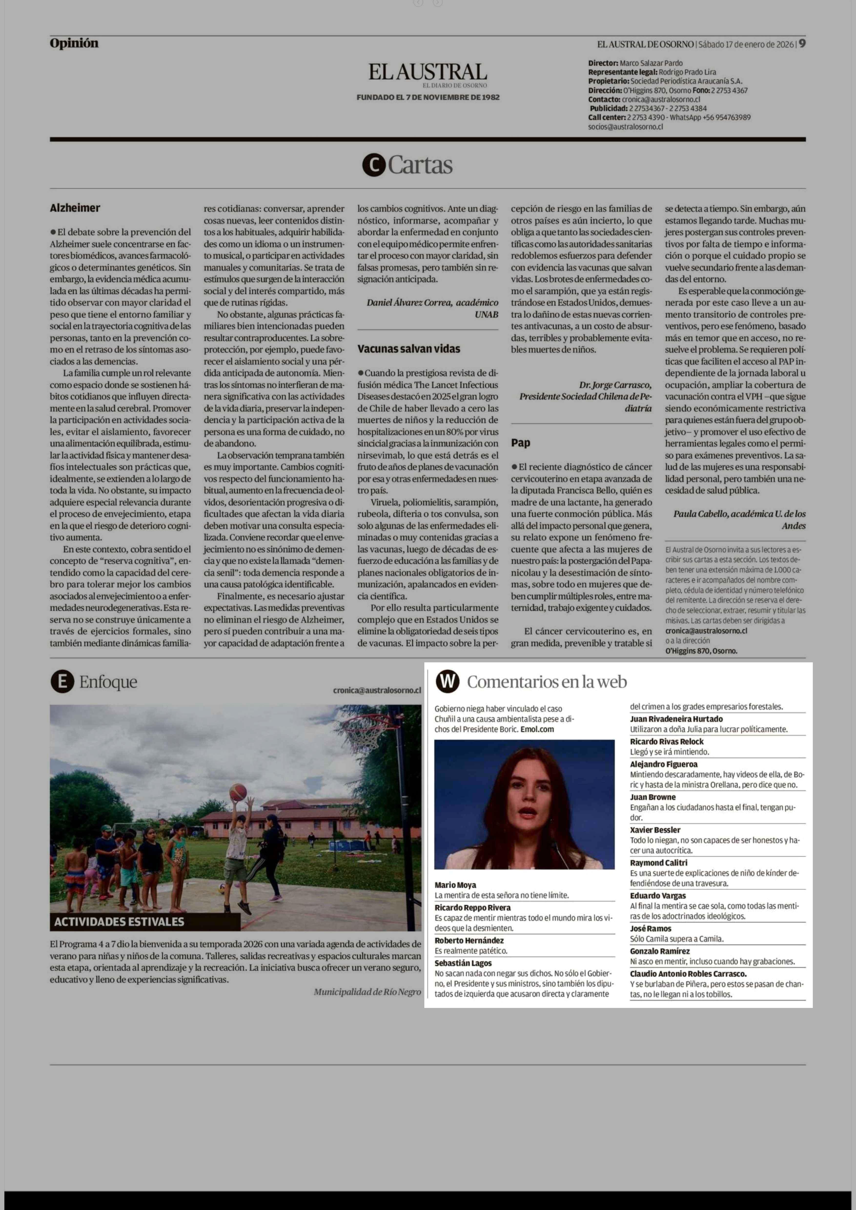 Gobierno niega haber vinculado el caso Chuñil a una causa ambientalista pese a dichos del Presidente Boric. Emol.com 17-01-2026 El Austral de Osorno |