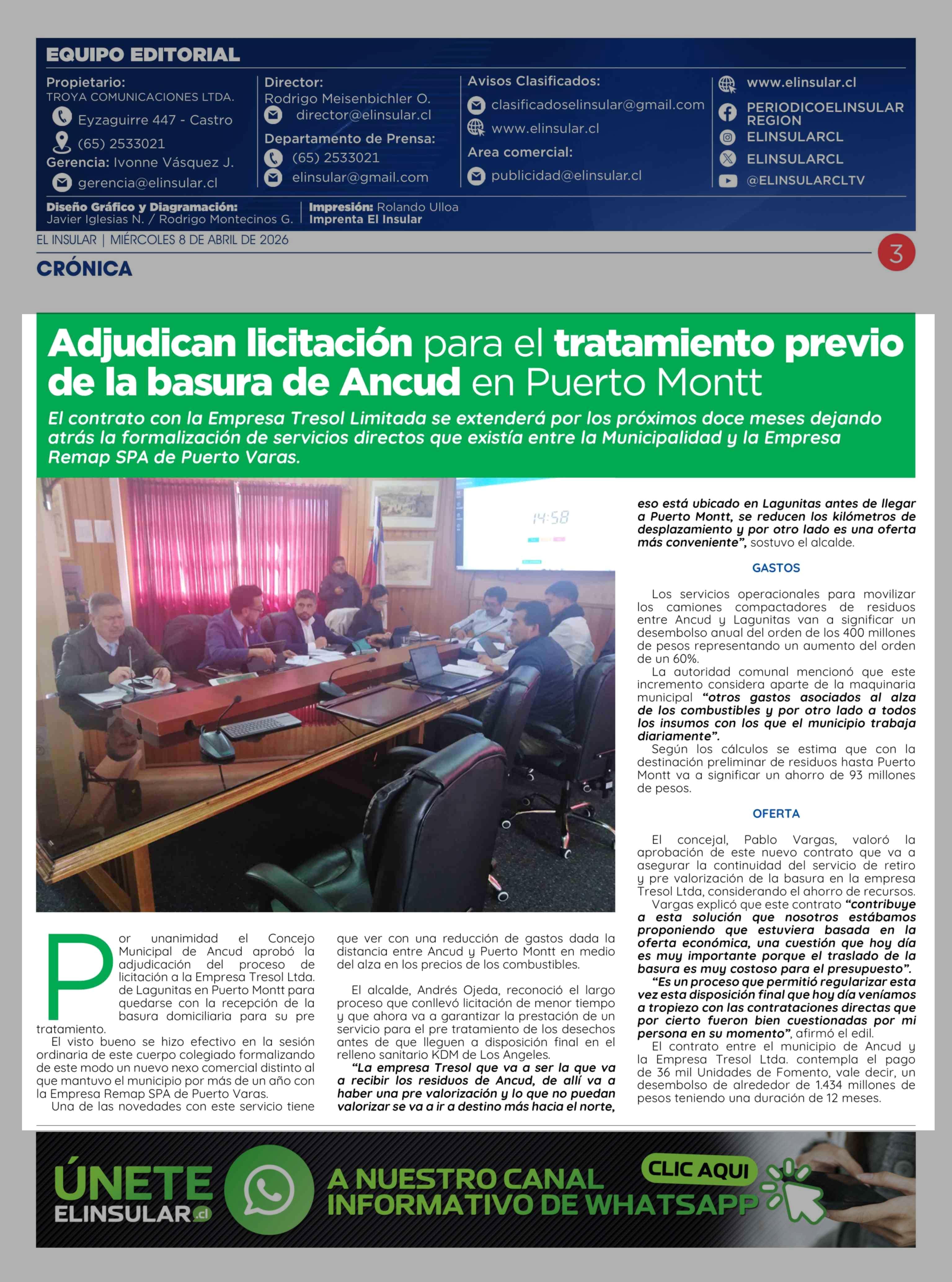 Título: Adjudican licitación para el tratamiento previo de la basura de Ancud en Puerto Montt