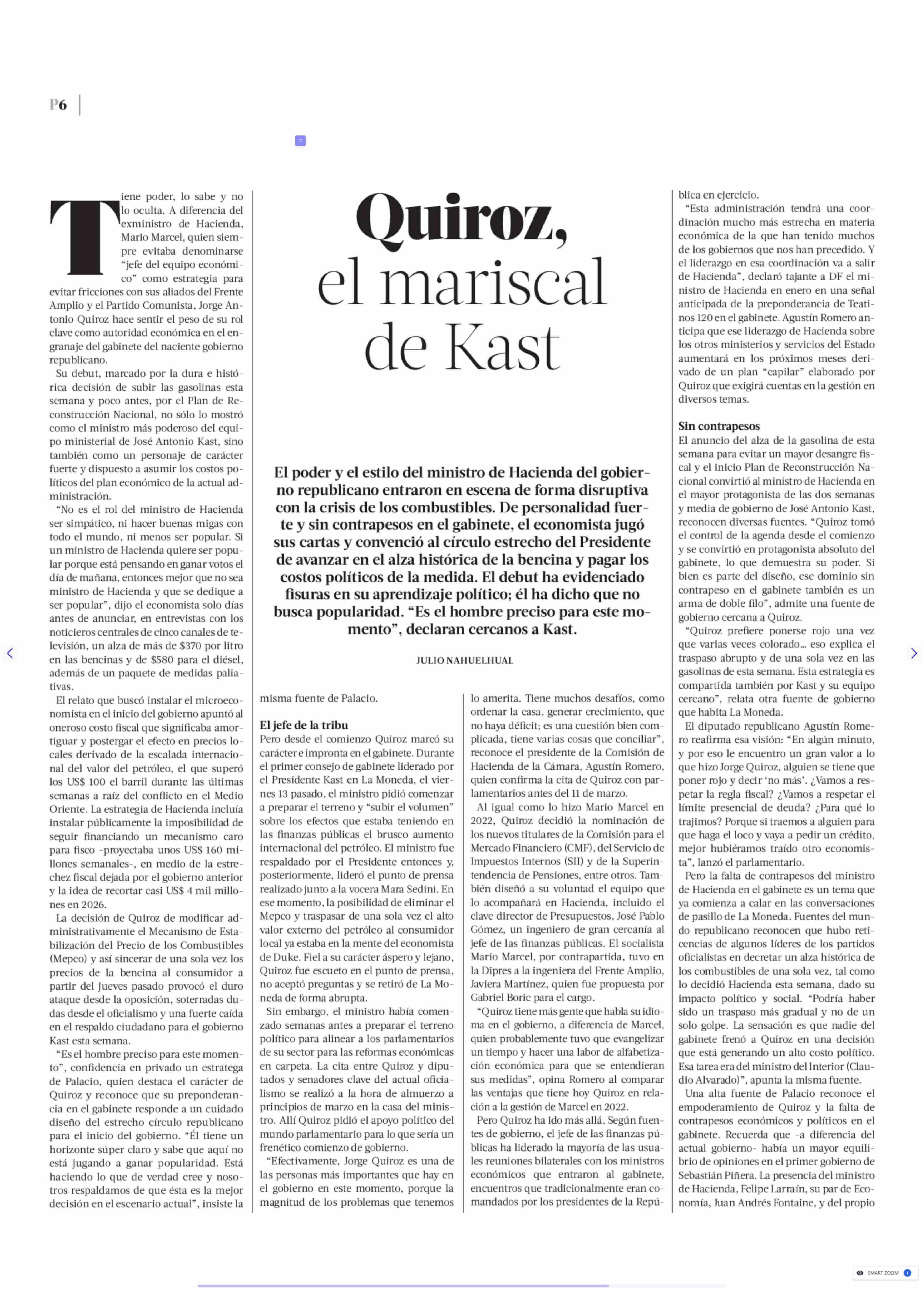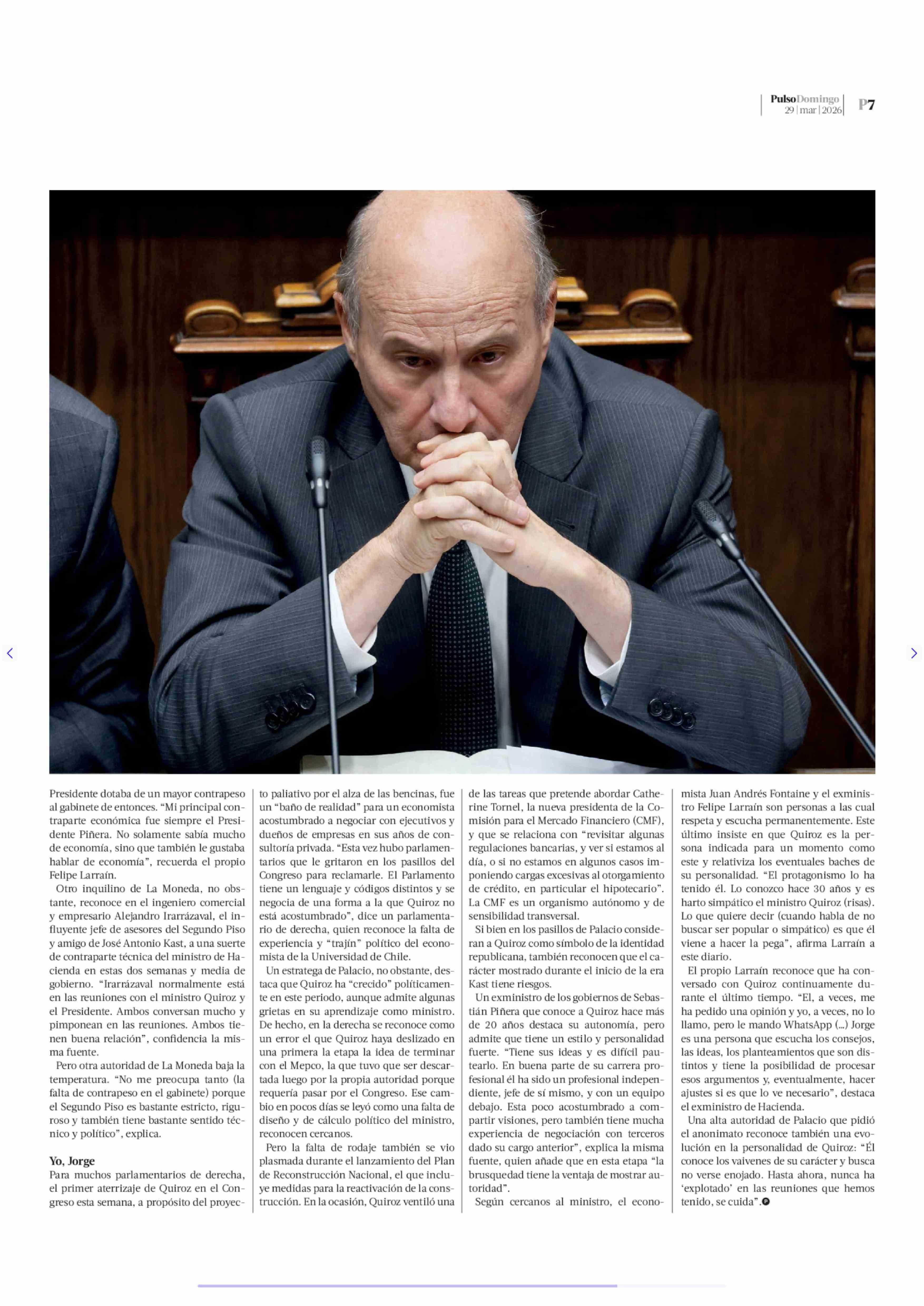 Quiroz, el mariscal de Kast 29-03-2026 La Tercera |