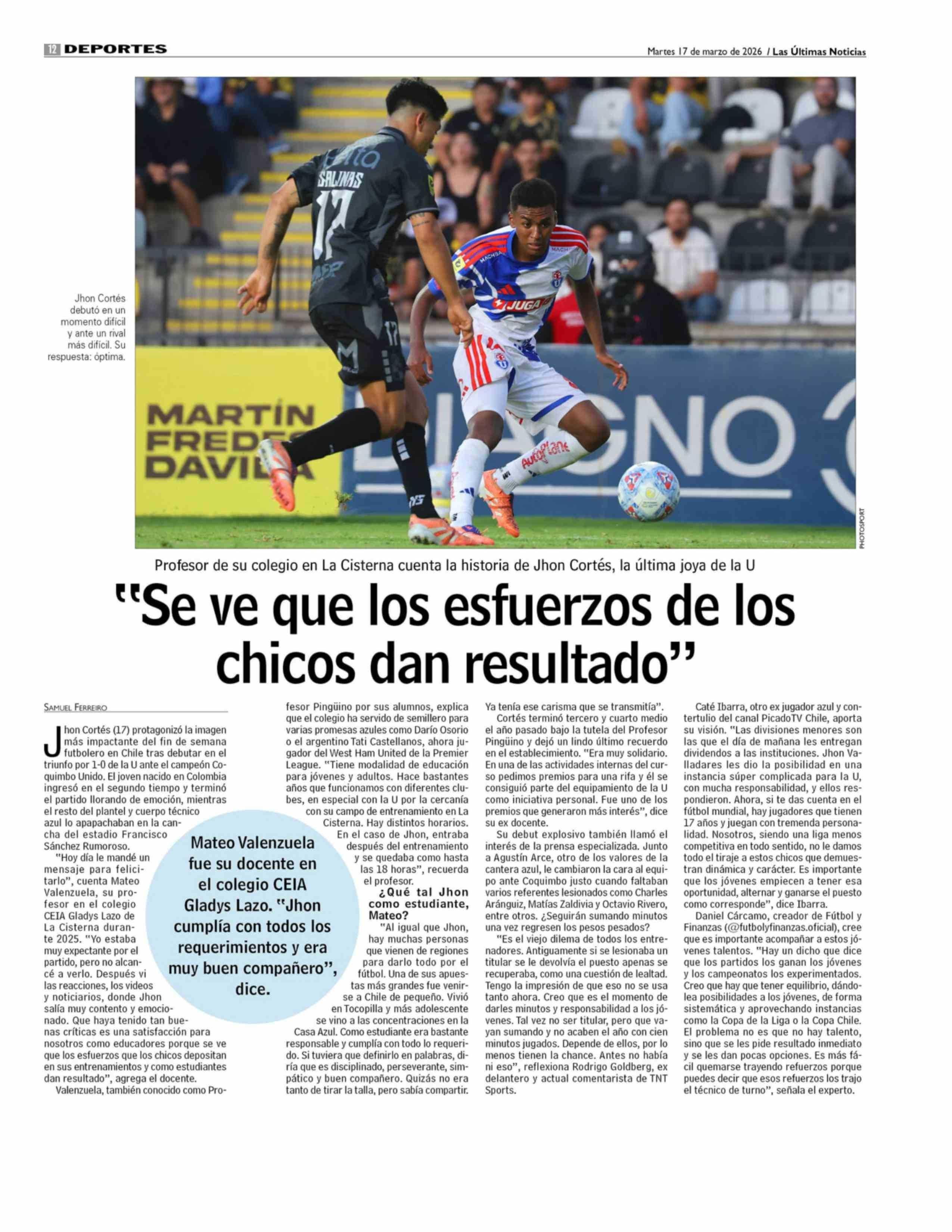 "Se ve que los esfuerzos de los chicos dan resultado" 17-03-2026 Las Últimas Noticias |
