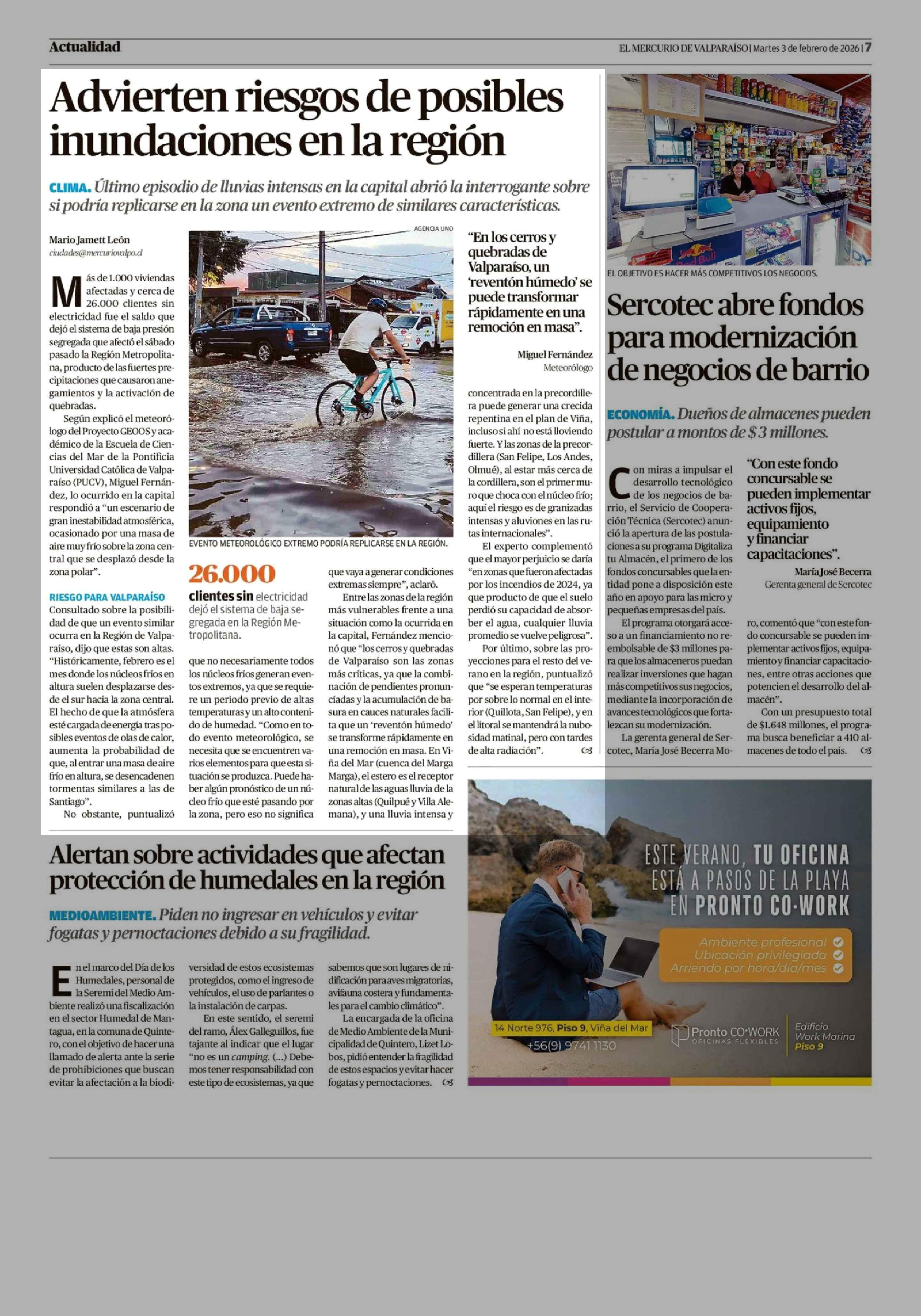 Advierten riesgos de posibles inundaciones en la región 03-02-2026 El Mercurio de Valparaíso |
