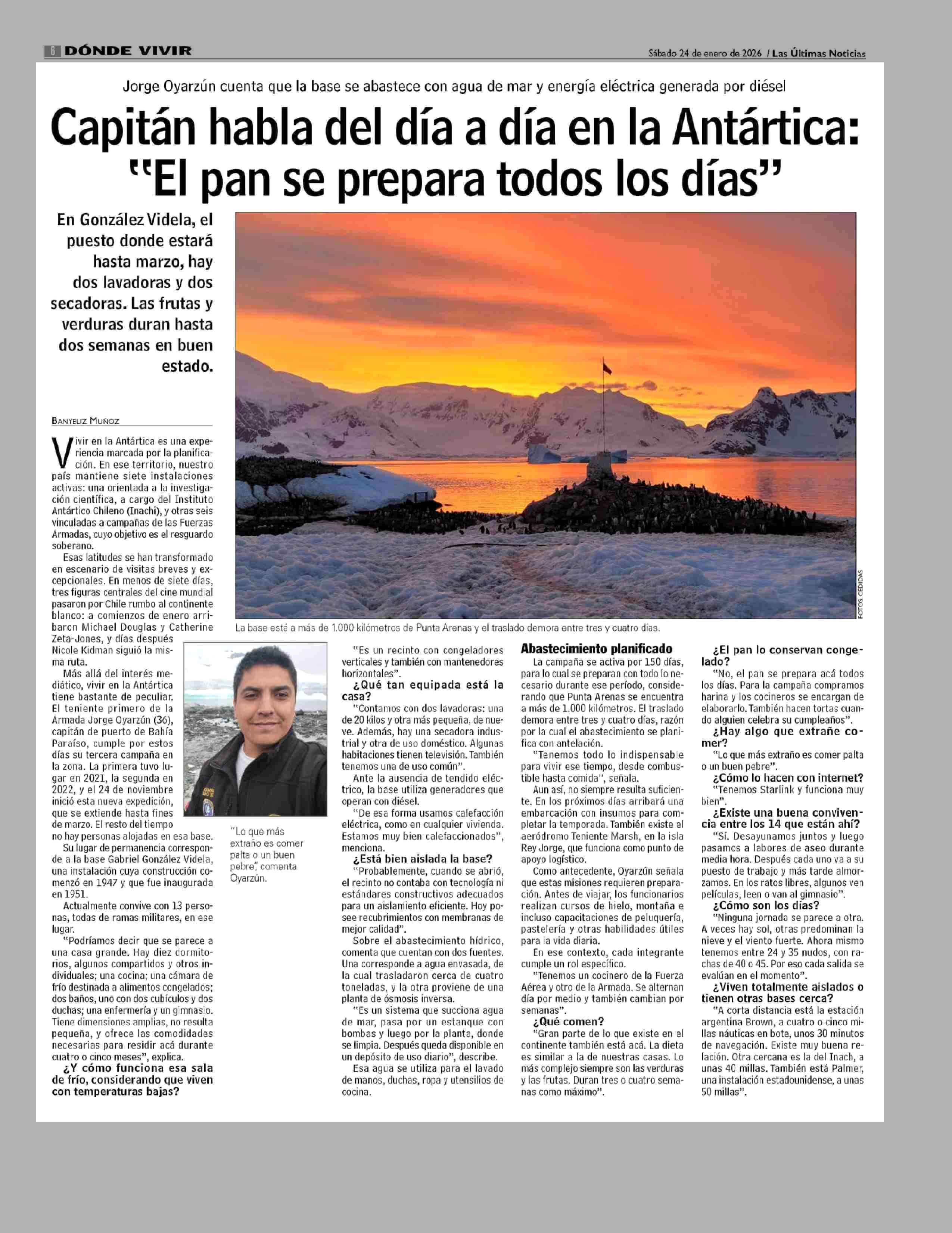 Capitán habla del día a día en la Antártica: "El pan se prepara todos los días" 24-01-2026 Las Últimas Noticias |
