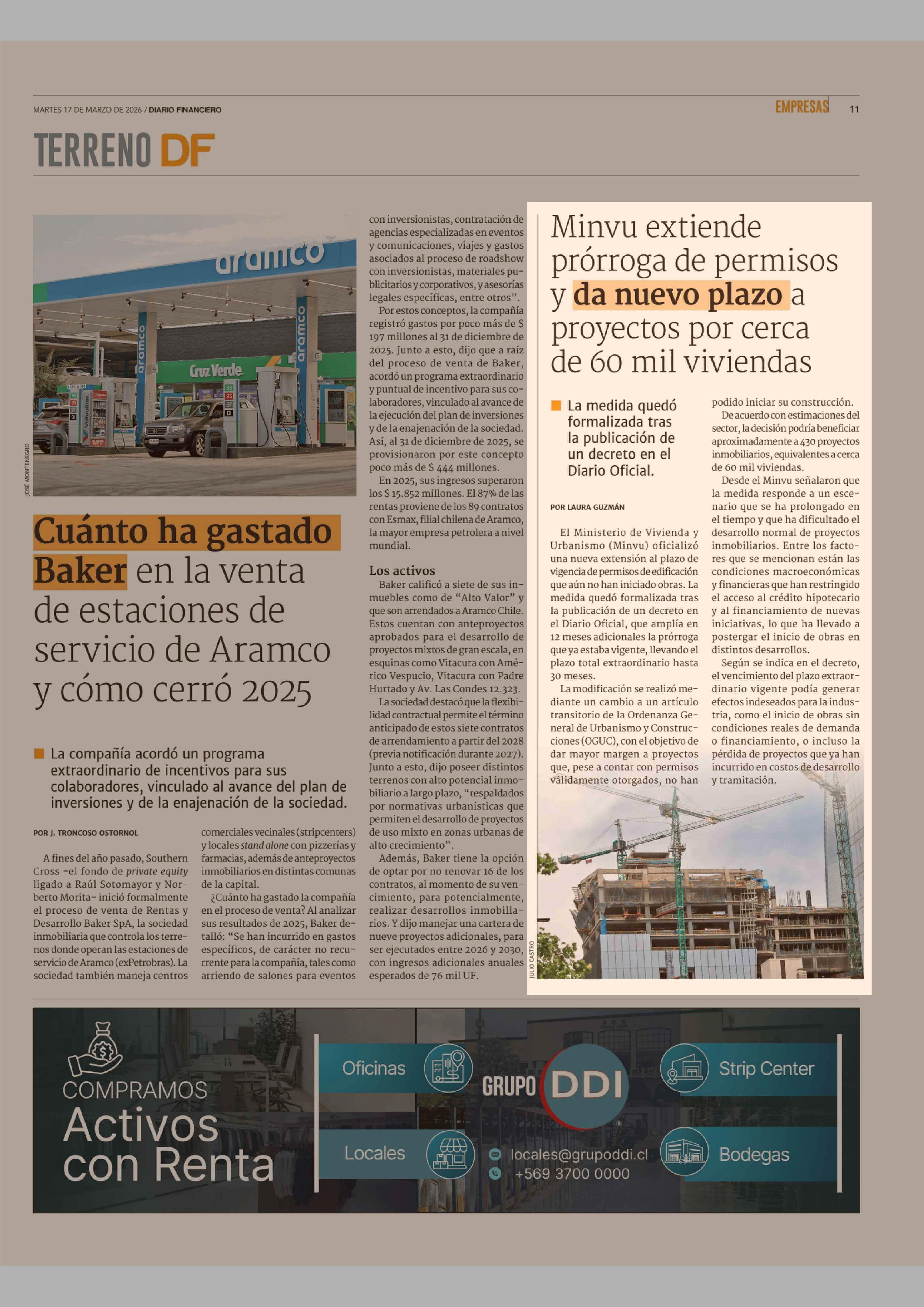 Minvu extiende prórroga de permisos y da nuevo plazo a proyectos por cerca de 60 mil viviendas 17-03-2026 Diario Financiero |