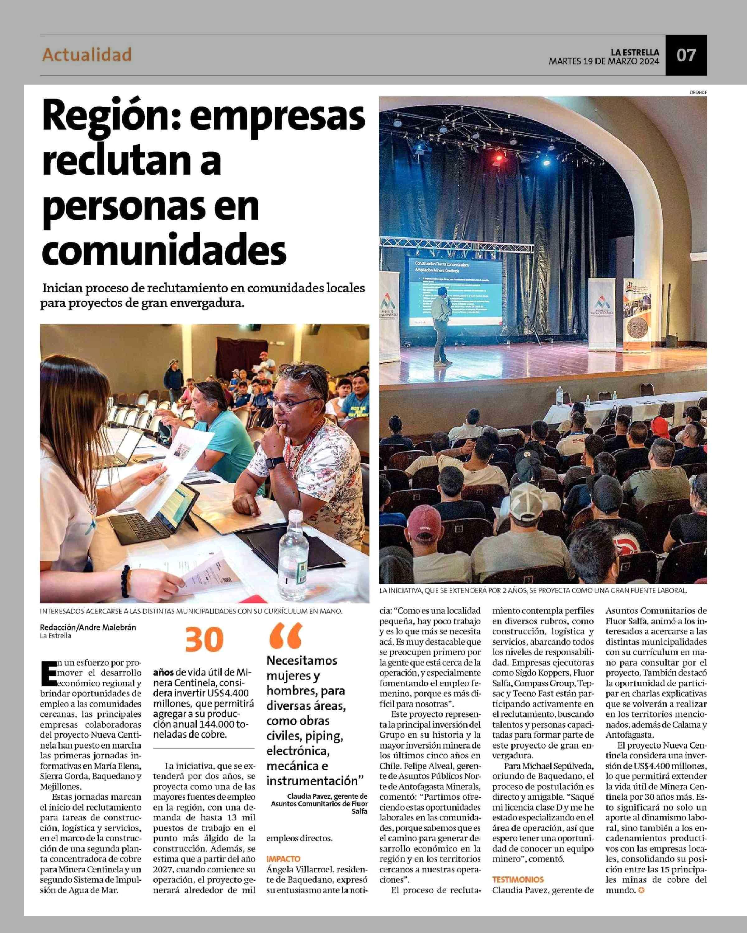 Región: empresas reclutan a personas en comunidades 19-03-2024 La Estrella Del Loa |