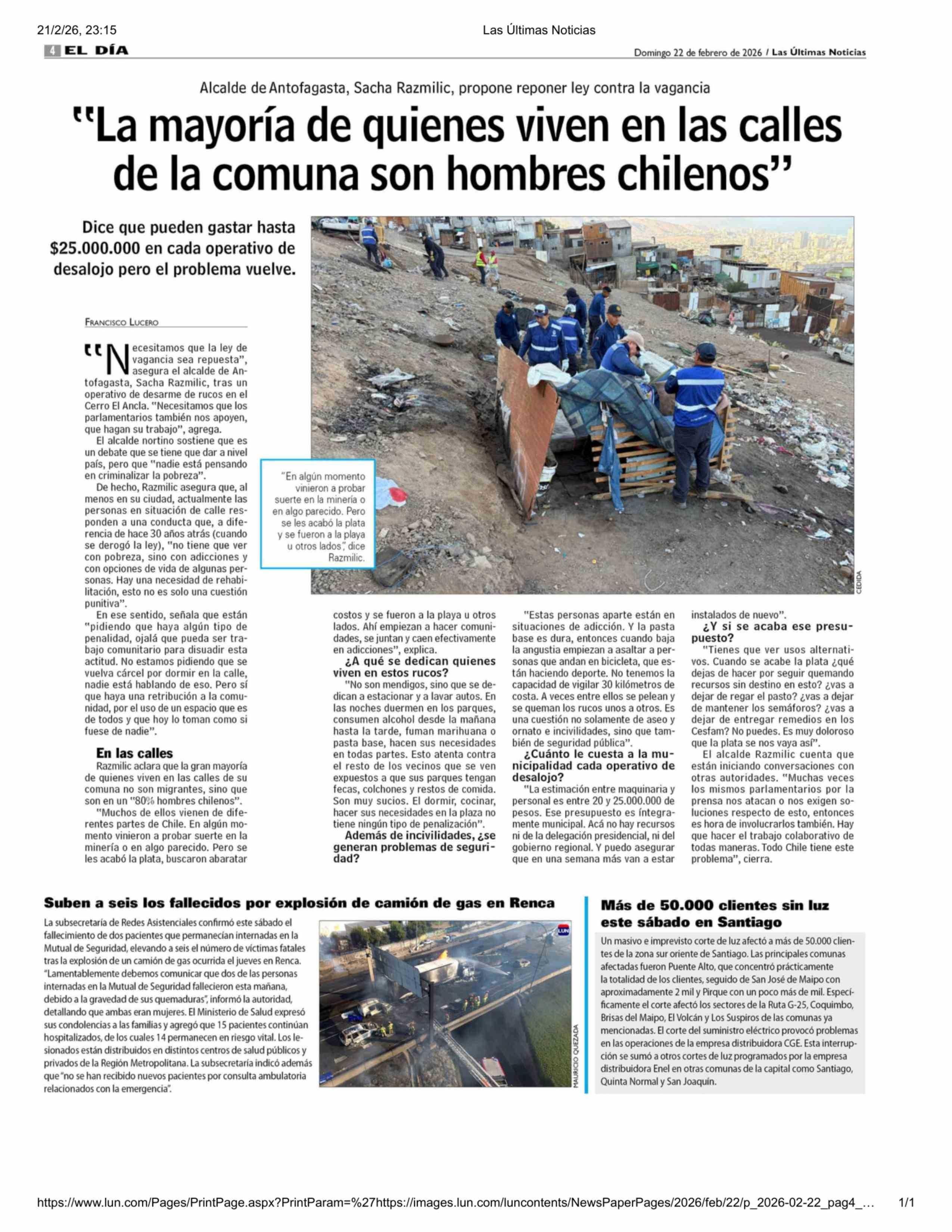 Suben a seis los fallecidos por explosión de camión de gas en Renca 22-02-2026 Las Últimas Noticias |