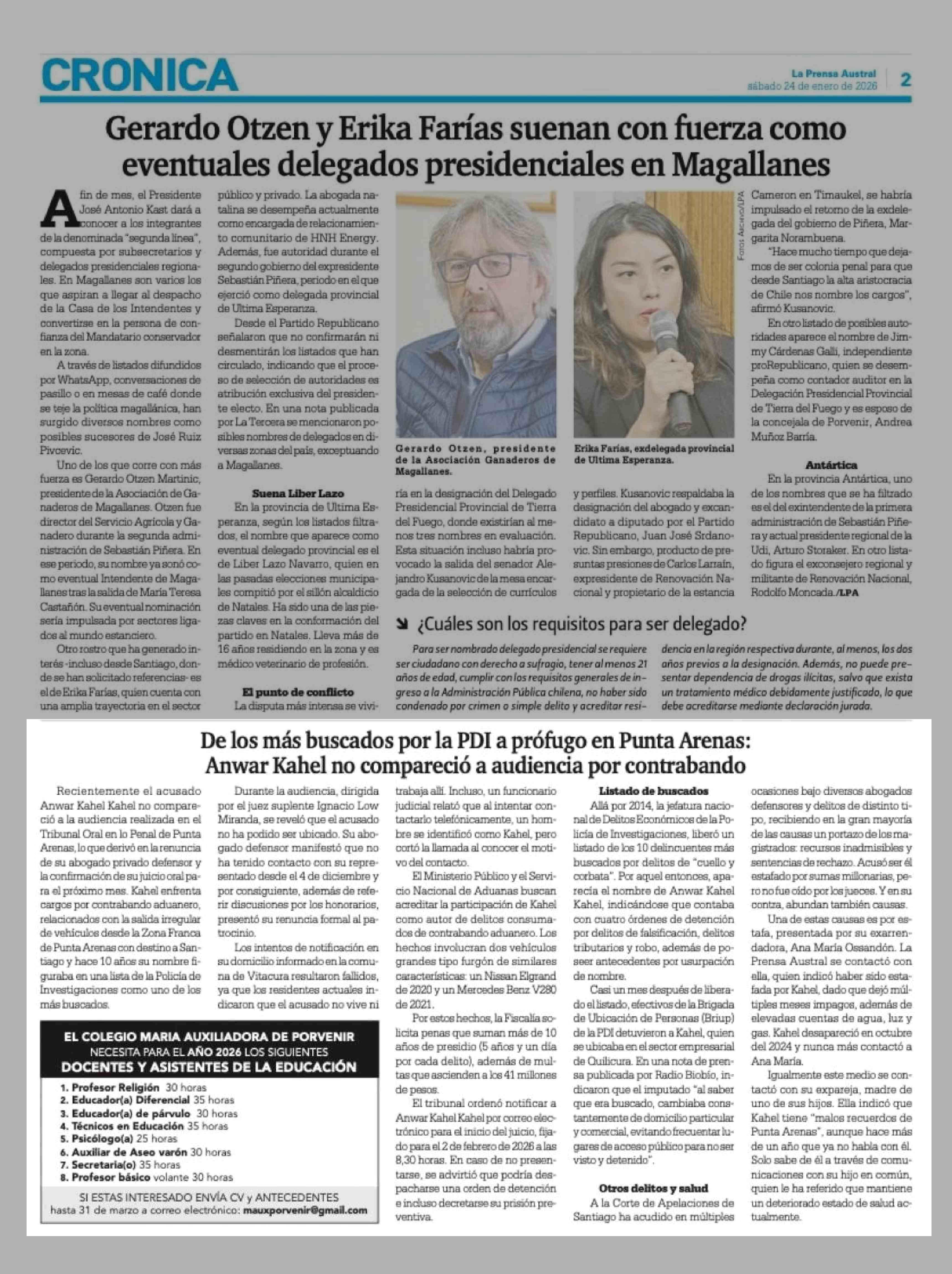 Fecha: 24-01-2026 Sector: Noticia general Región: Región de Magallanes y de la Antártica Chilena