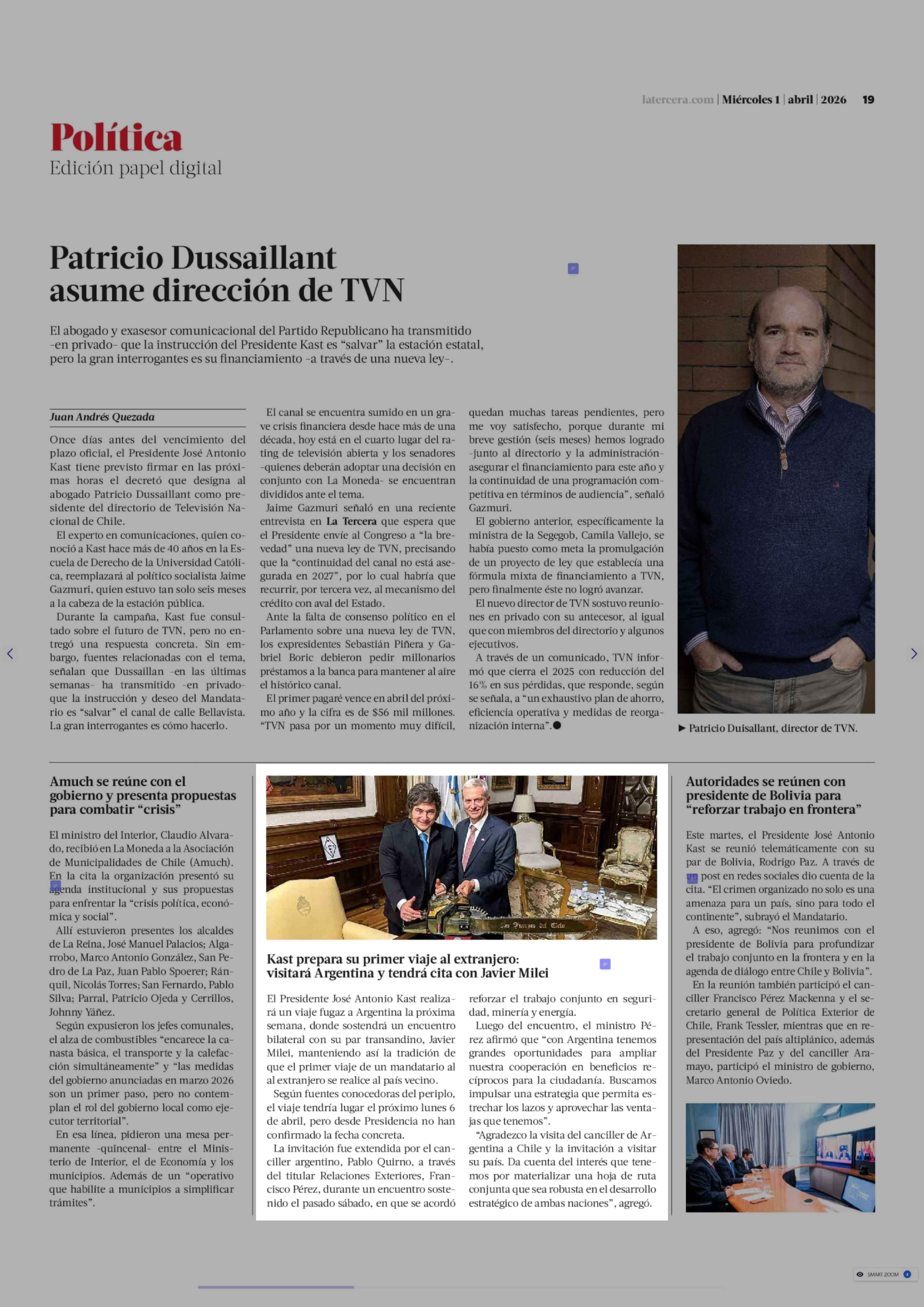 Fuente: La Tercera (La Tercera) Página(s): 19