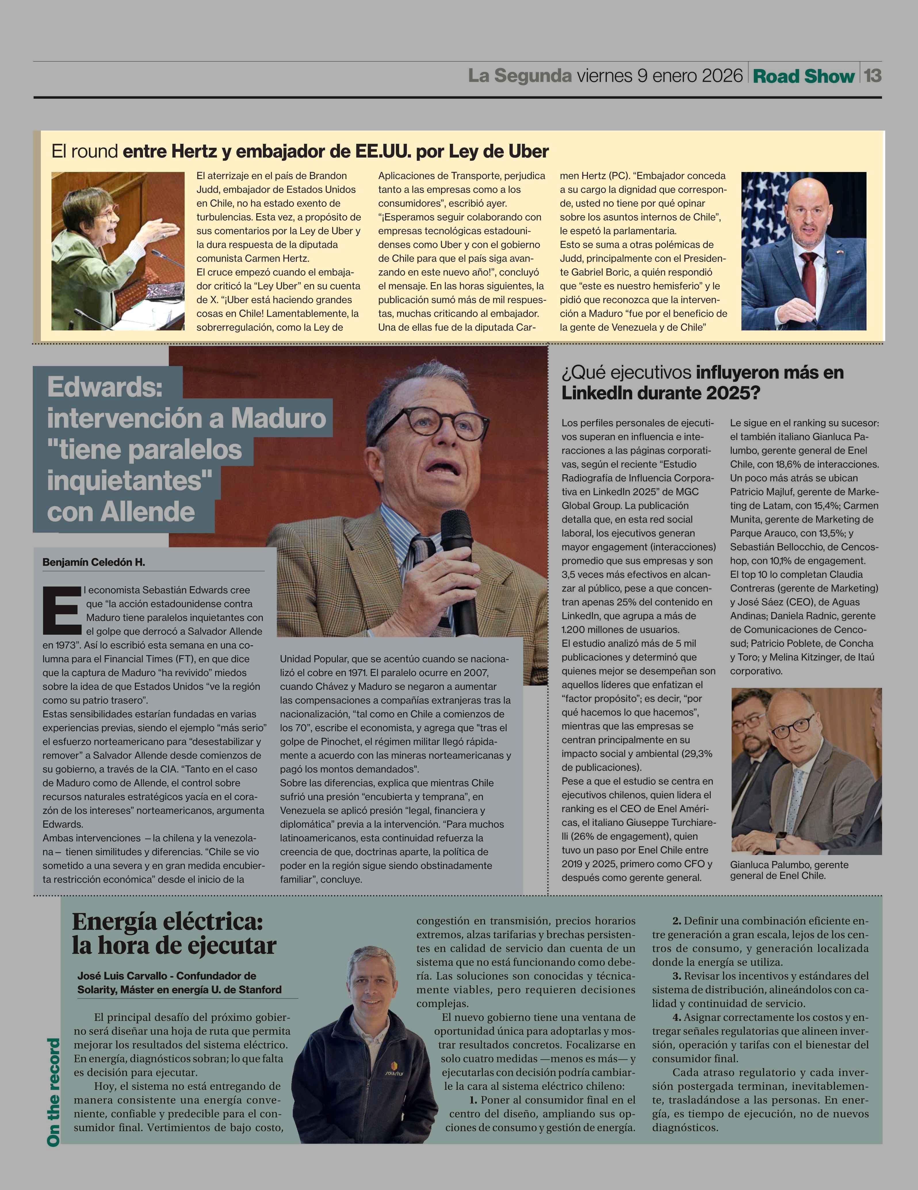 El round entre Hertz y embajador de EE.UU. por Ley de Uber 09-01-2026 La Segunda |