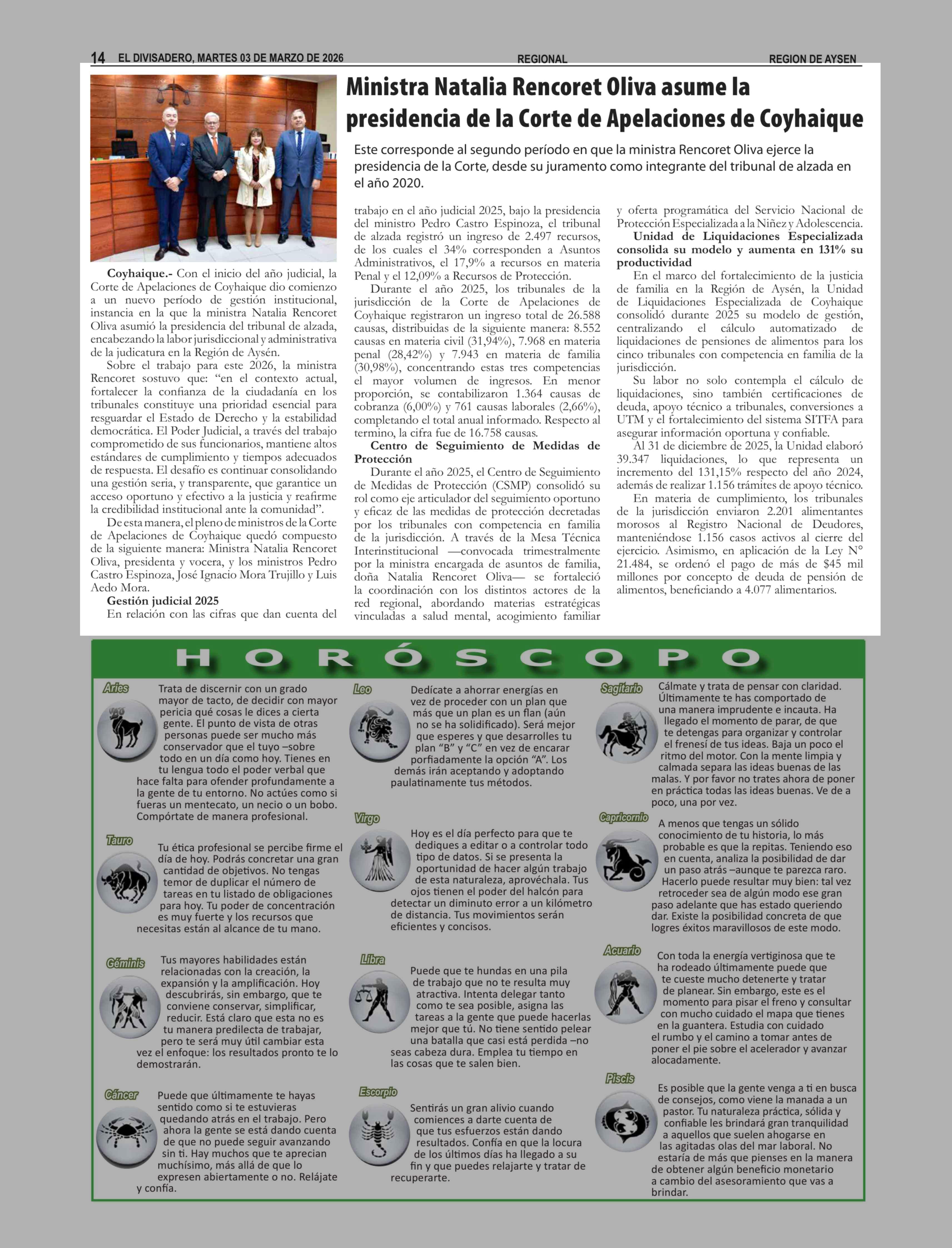 Ministra Natalia Rencoret Oliva asume la presidencia de la Corte de Apelaciones de Coyhaique 03-03-2026 El Divisadero |