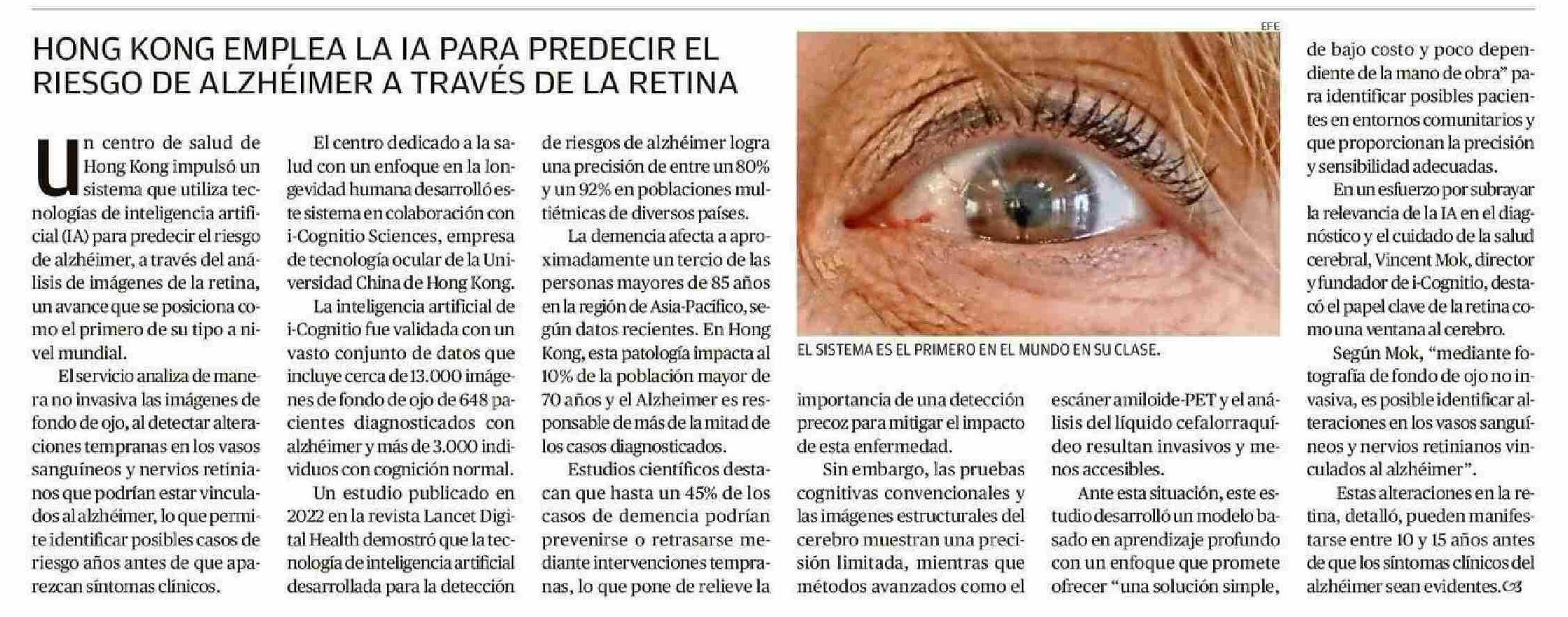 Título: HONG KONG EMPLEA LAIA PARA PREDECIR EL RIESGO DE ALZHEIMER A TRAVES DE LA RETINA