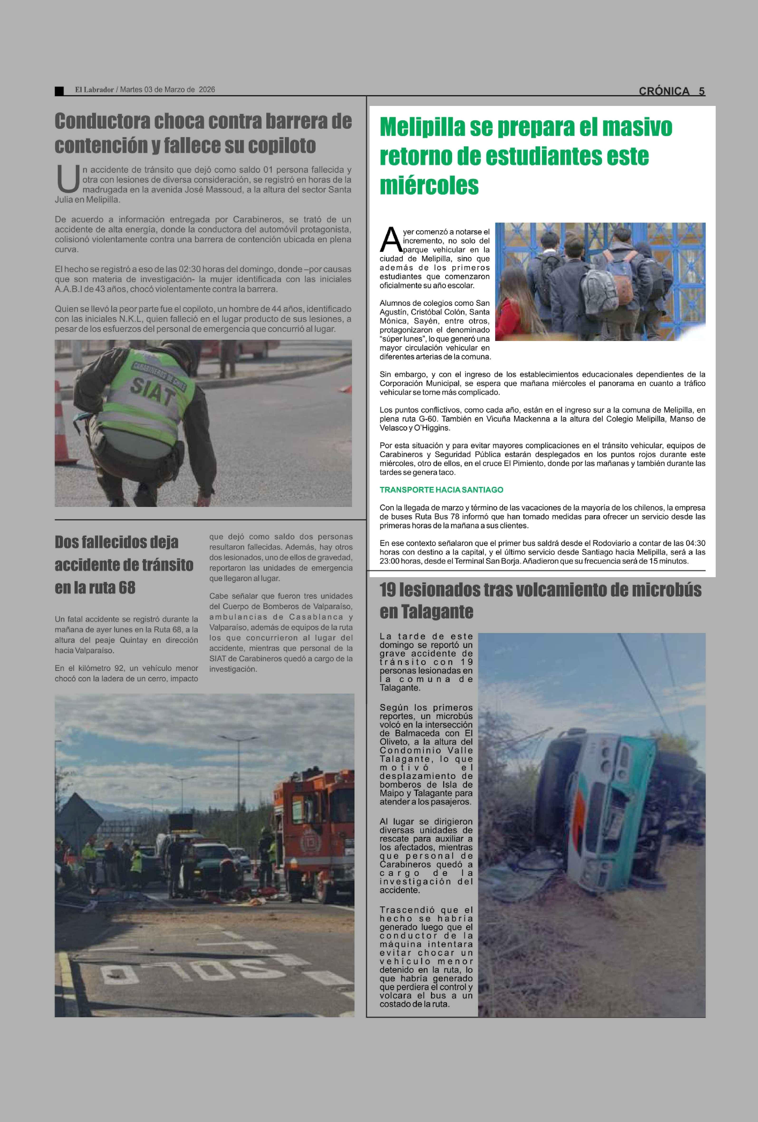 Melipilla se prepara el masivo retorno de estudiantes este miércoles 03-03-2026 El Labrador |