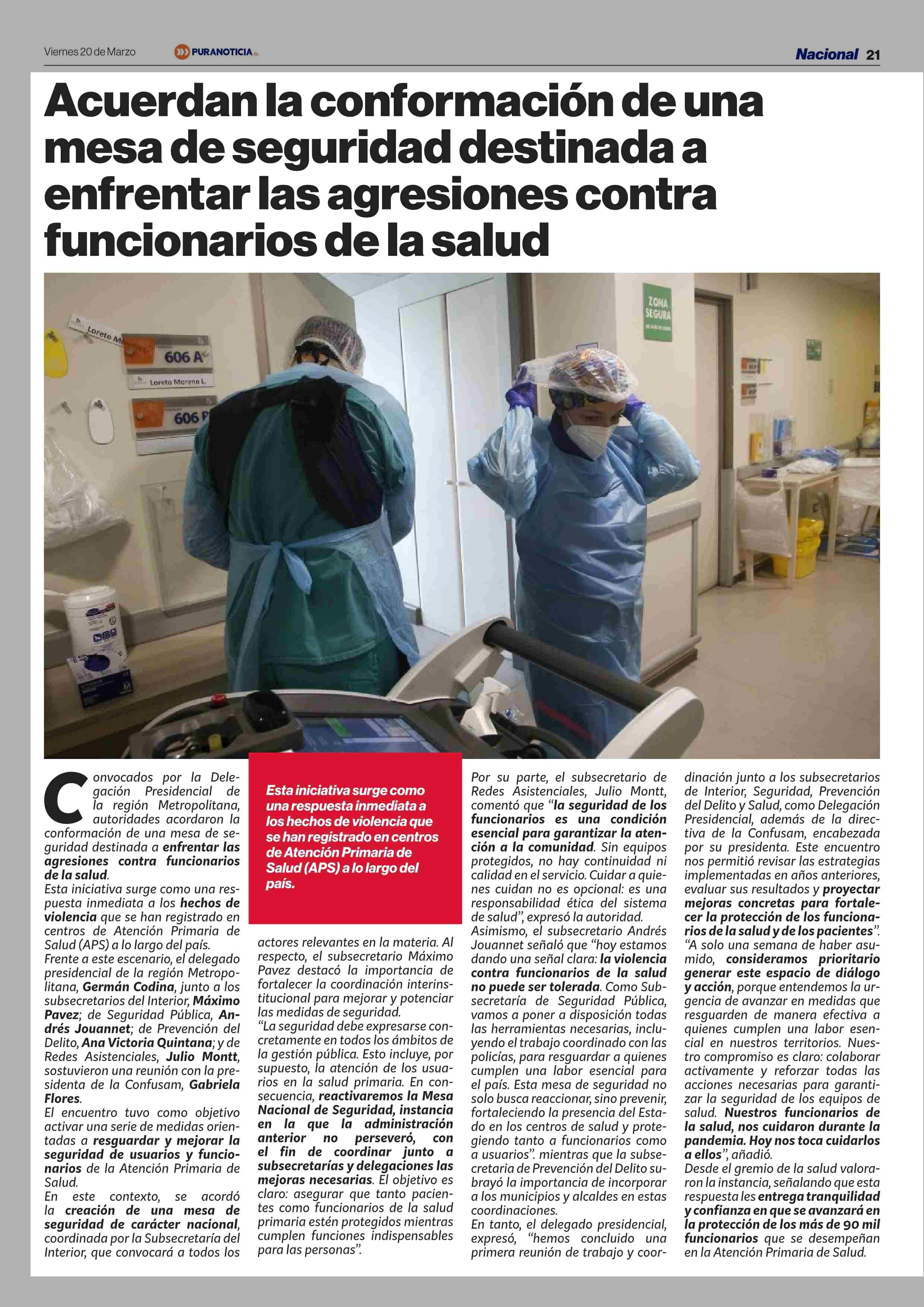 Título: Acuerdan la conformación de una mesa de seguridad destinada a enfrentar las agresiones contra funcionarios de la salud