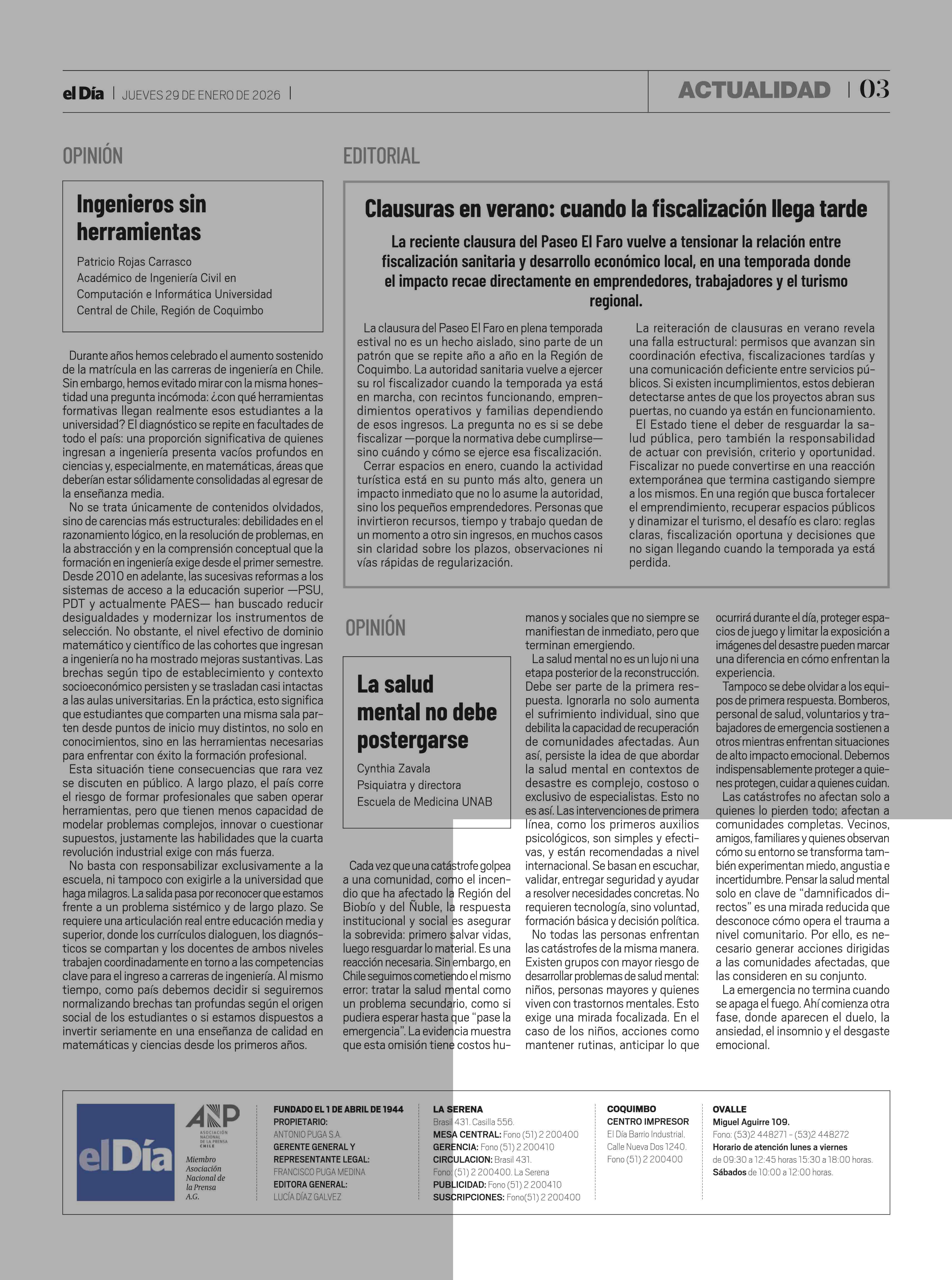 Fecha: 29-01-2026 Sector: Columnas de Opinión Región: Región de Coquimbo