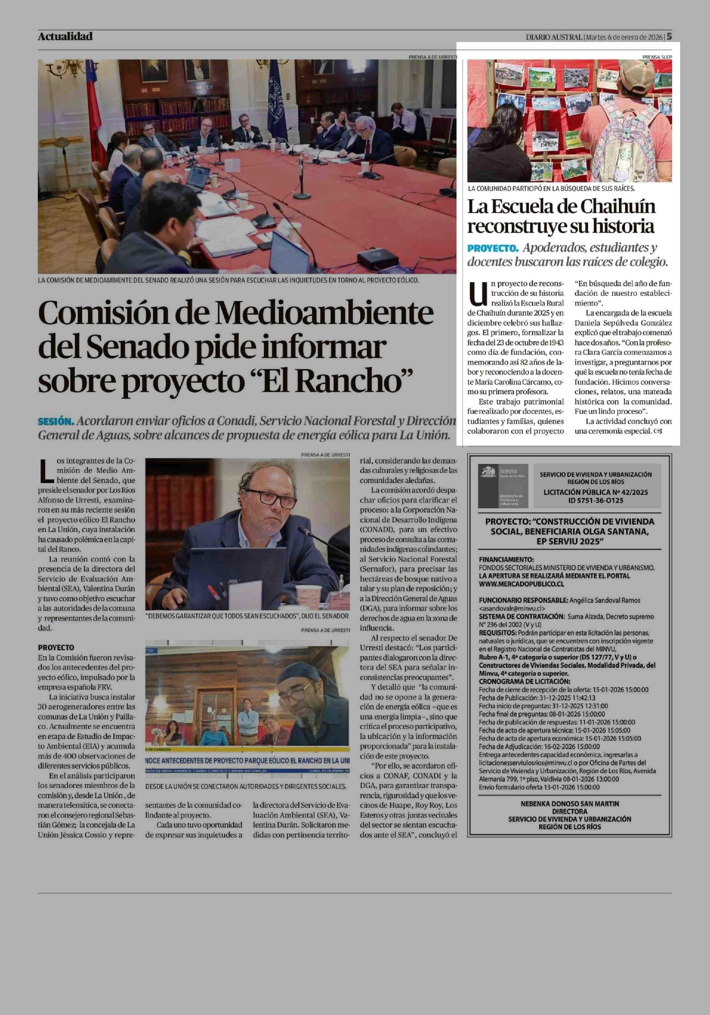Fuente: Diario Austral Región de Los Ríos (Diario Austral Región de Los Ríos) Página(s): 5
