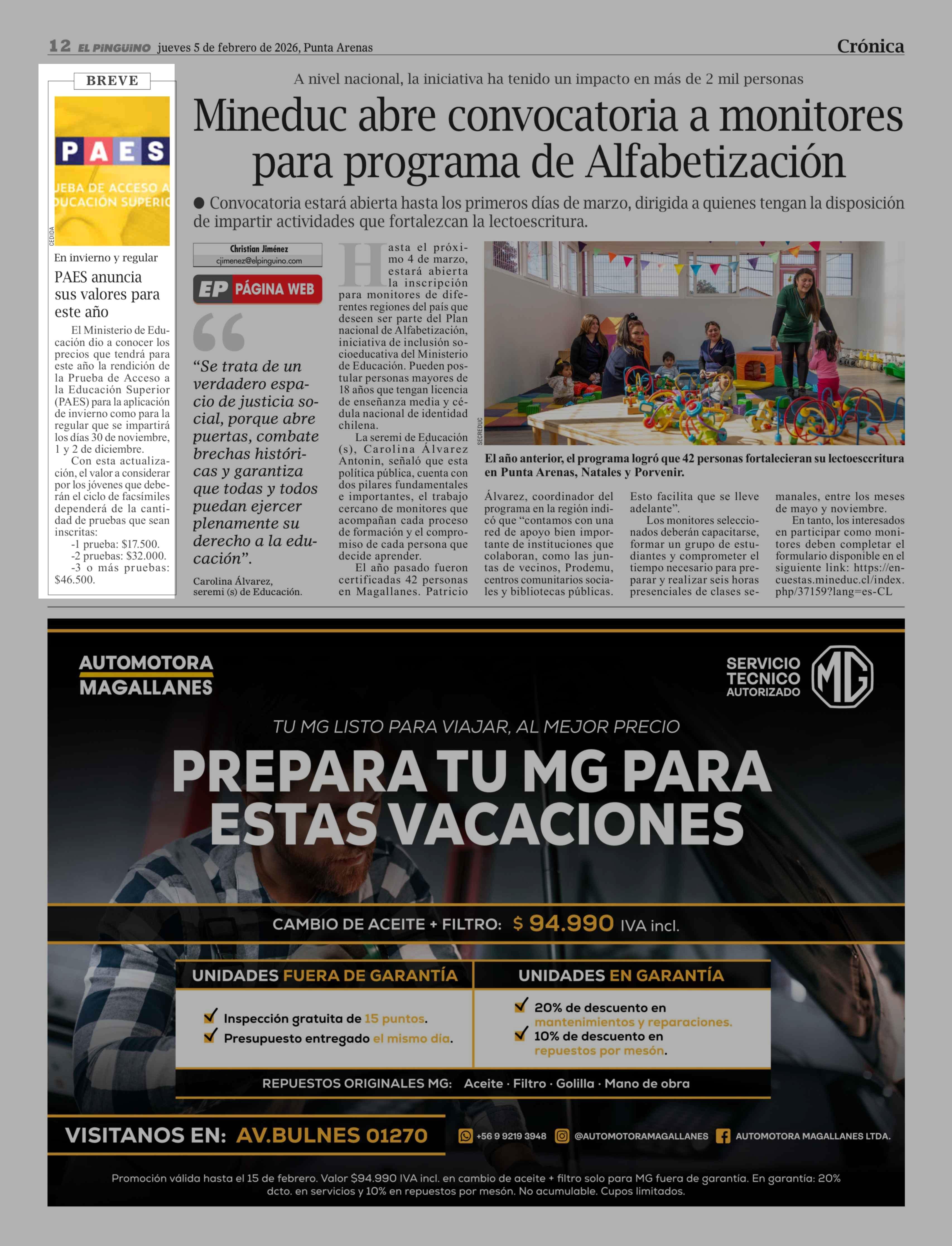 Fecha: 05-02-2026 Sector: Noticia general Región: Región de Magallanes y de la Antártica Chilena