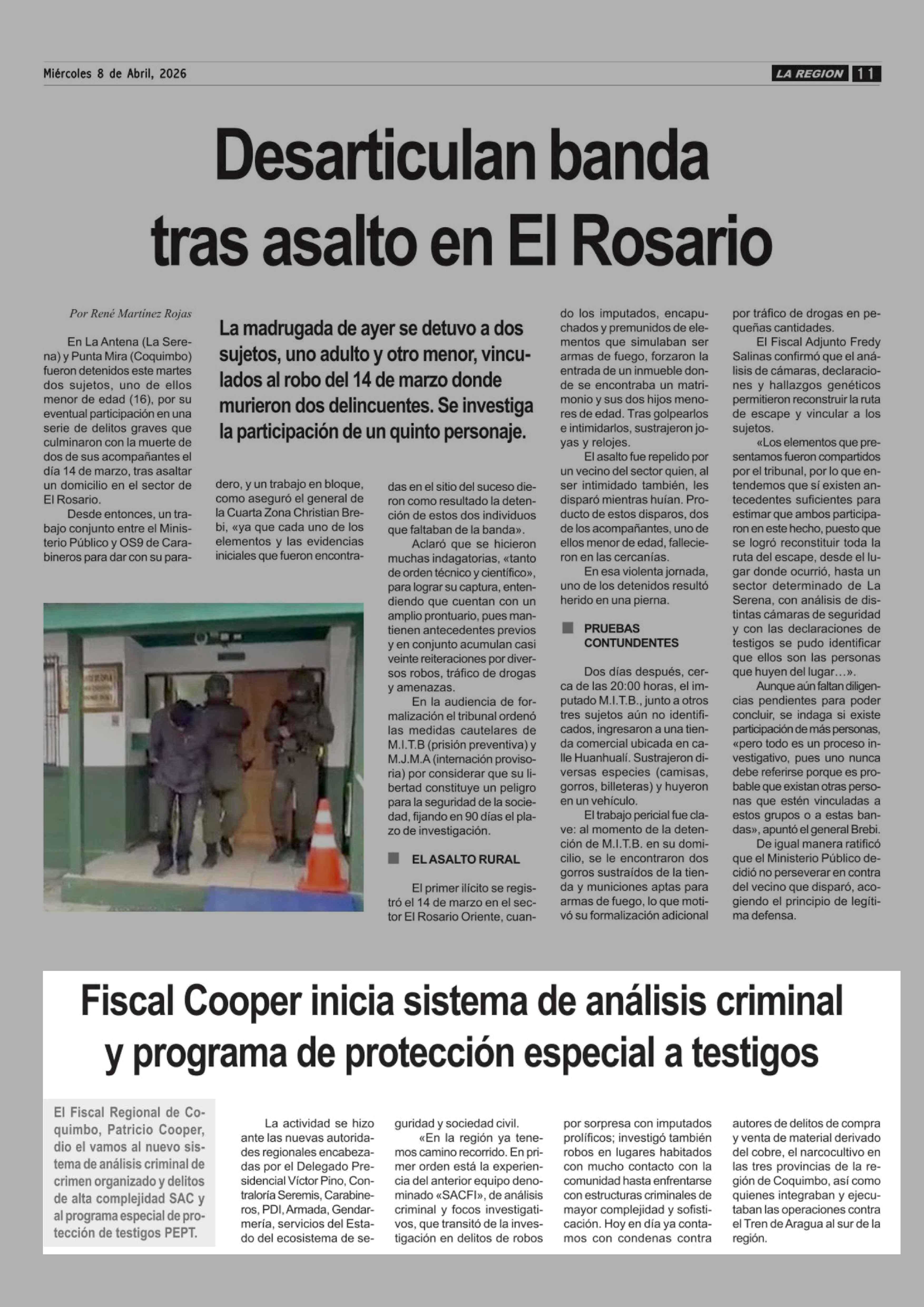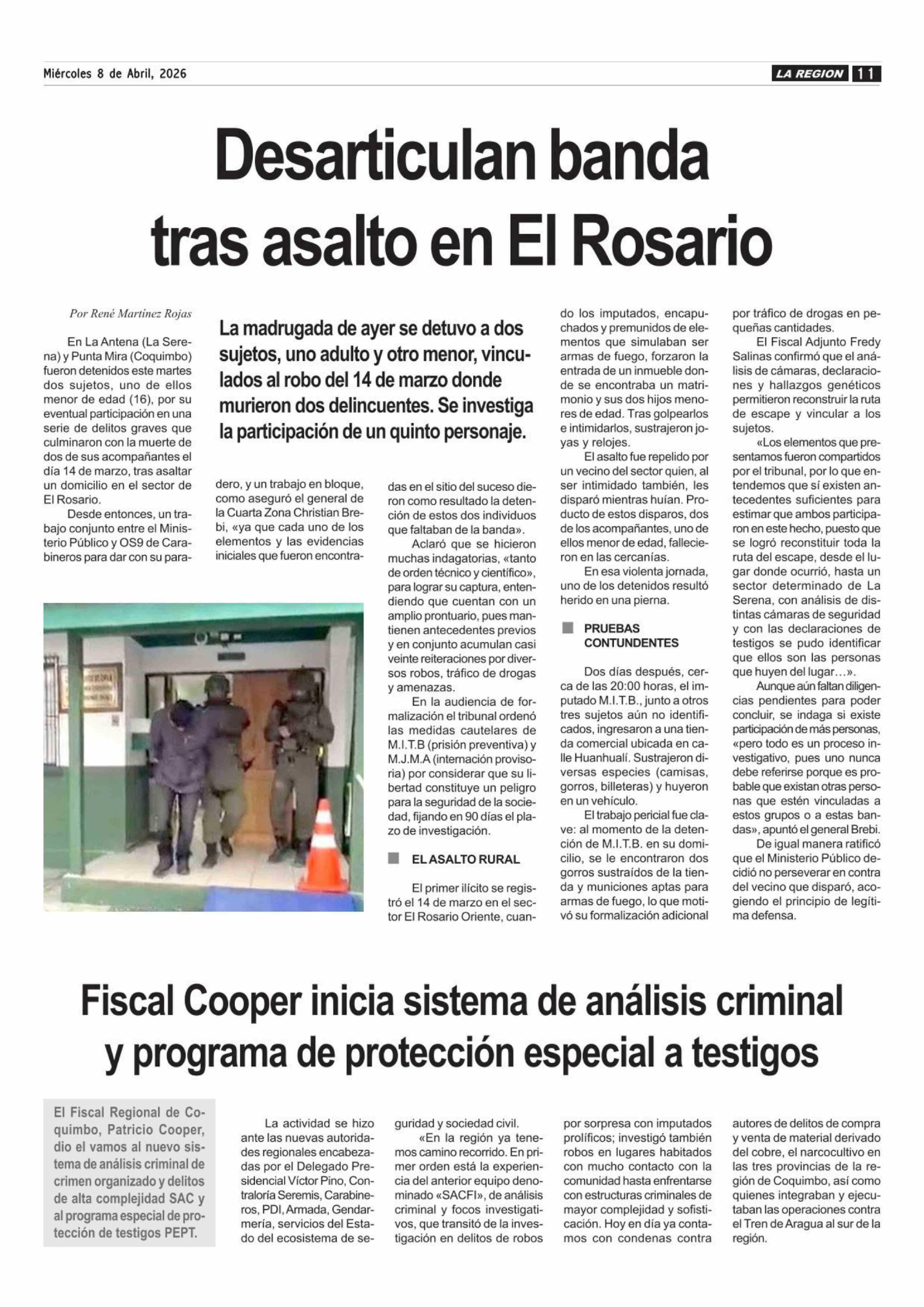 Fiscal Cooper inicia sistema de análisis criminal y programa de protección especial a testigos 08-04-2026 Diario la Región |