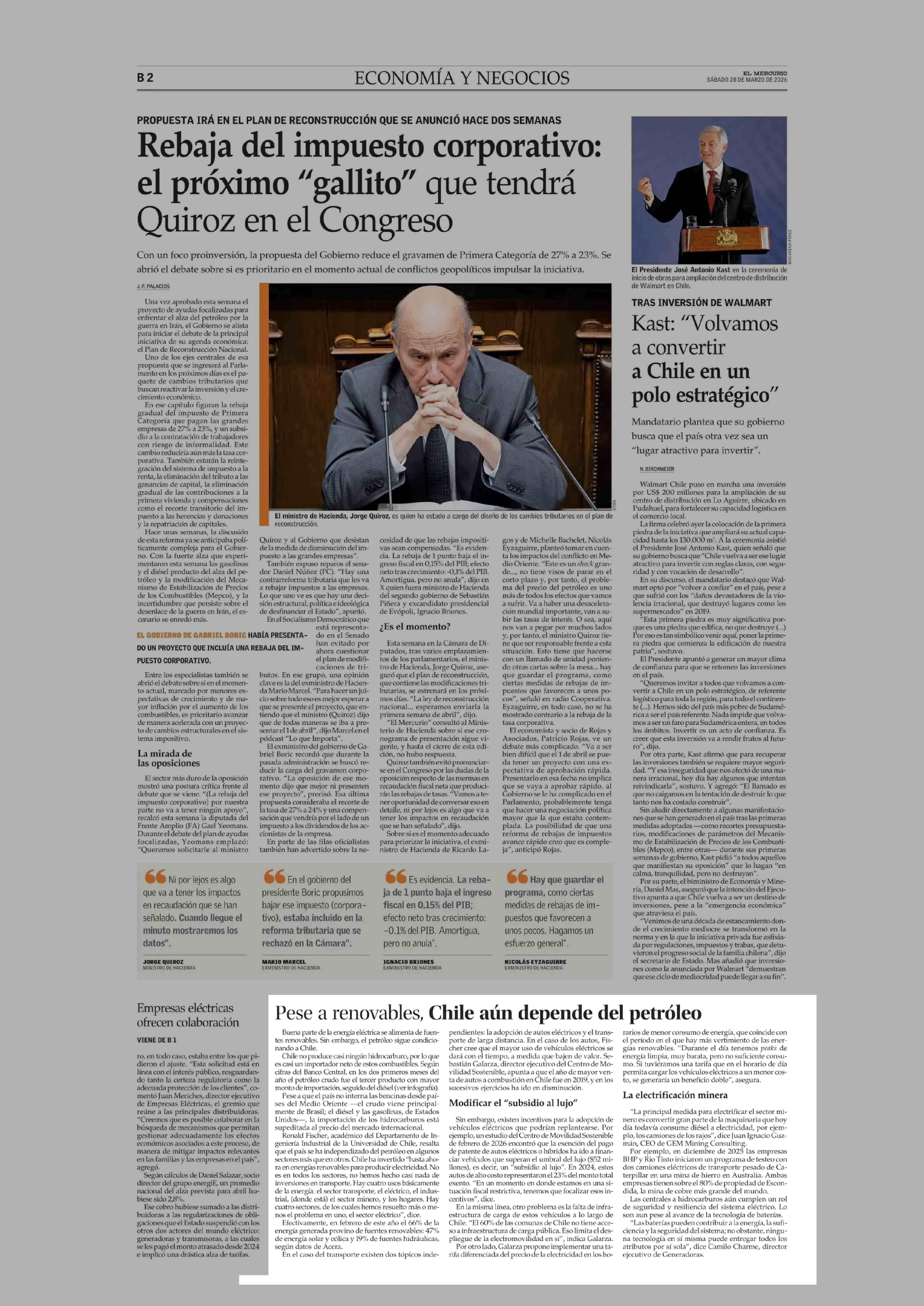 Pese a renovables, Chile aún depende del petróleo 28-03-2026 El Mercurio |