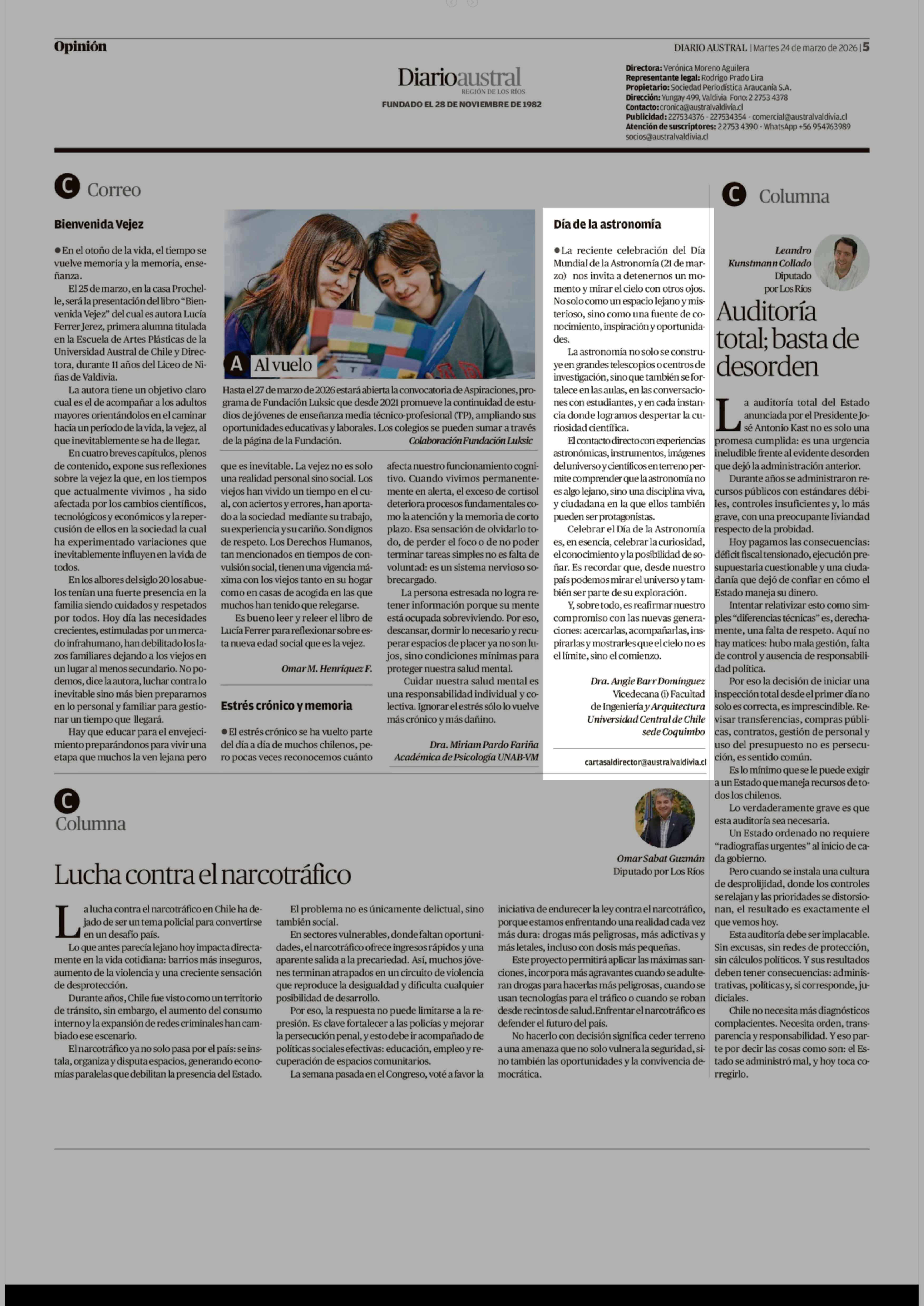Fuente: Diario Austral Región de Los Ríos (Diario Austral Región de Los Ríos) Página(s): 5