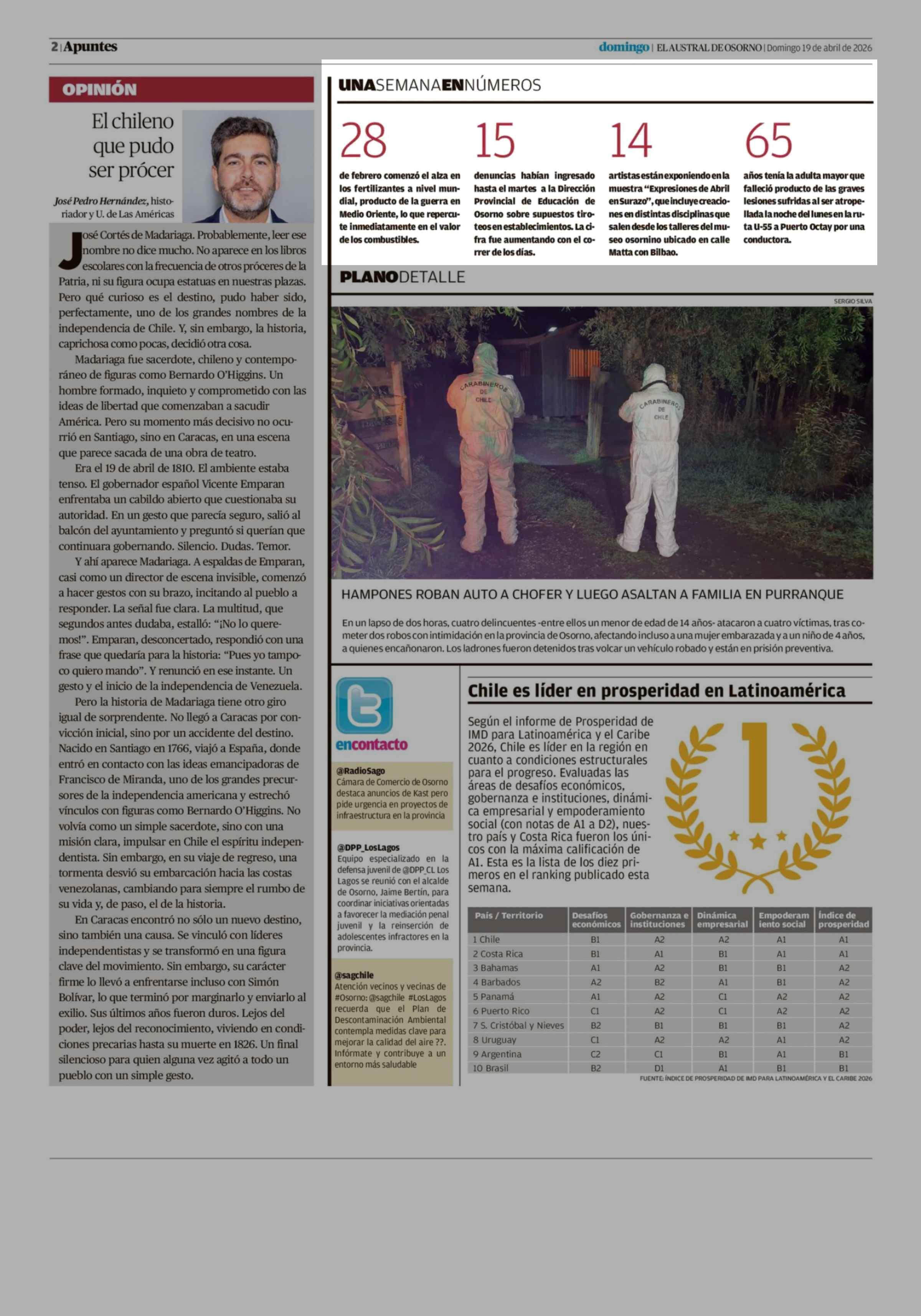 UNA SEMANA EN NÚMEROS 19-04-2026 El Austral de Osorno |