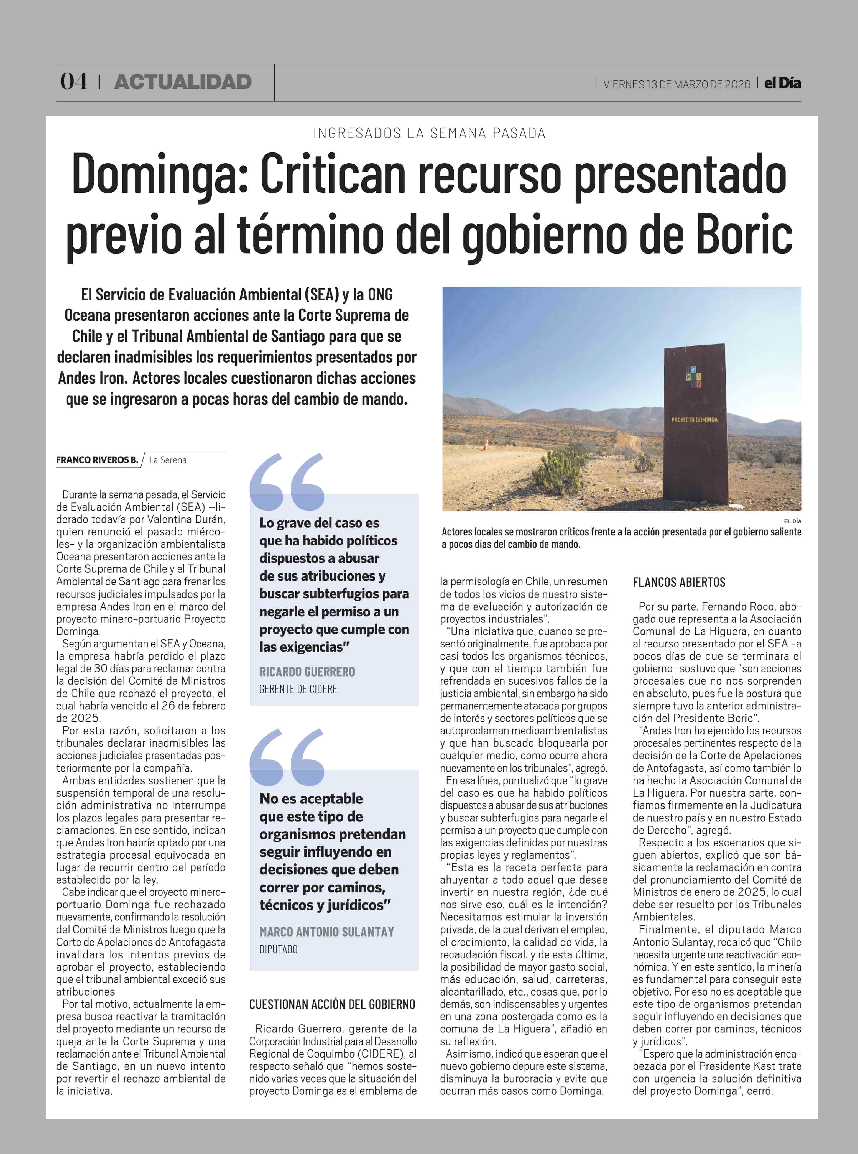 Fecha: 13-03-2026 Sector: Noticia general Región: Región de Coquimbo