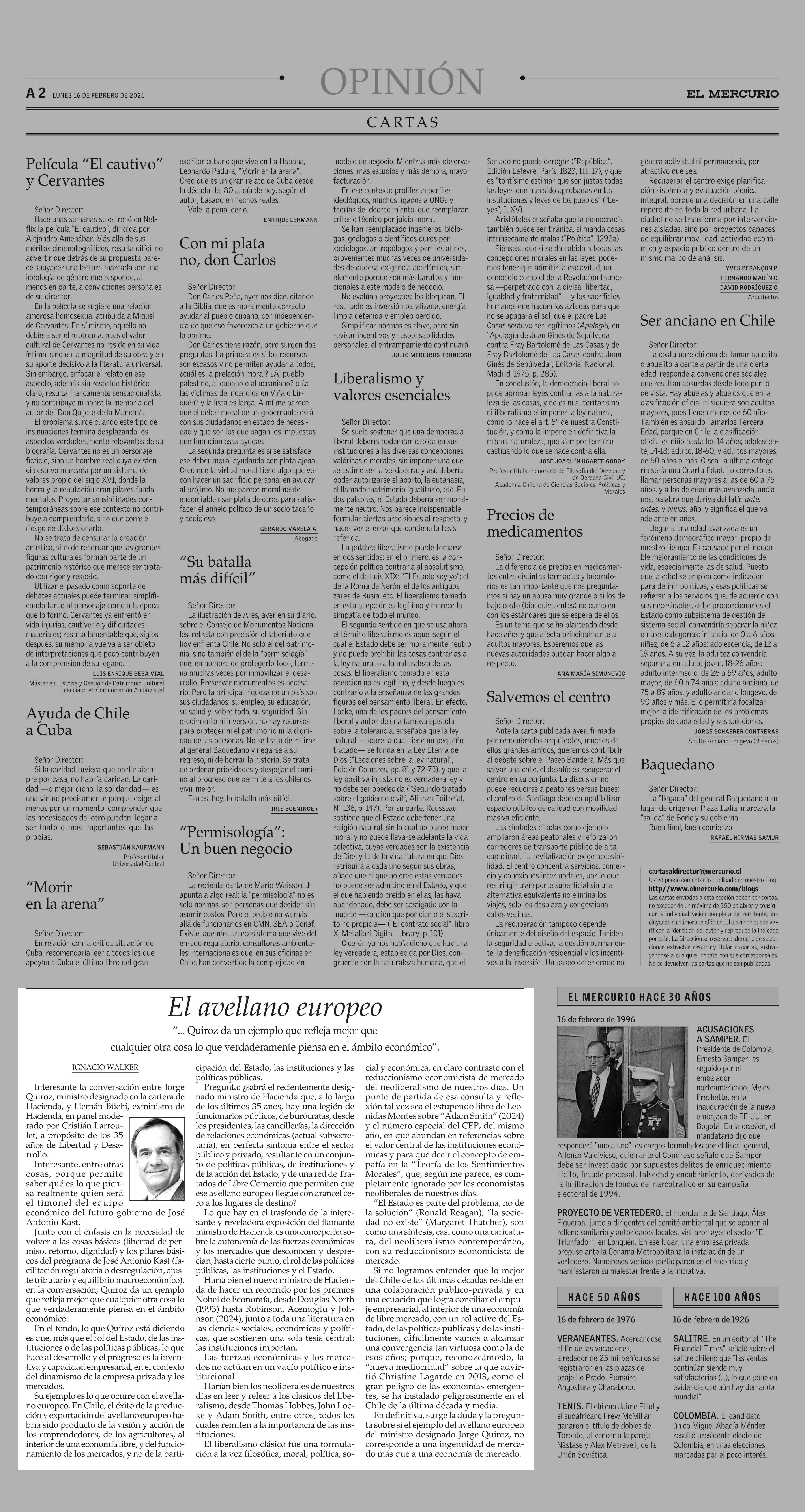 Columnas de Opinión: El avellano europeo 16-02-2026 El Mercurio |